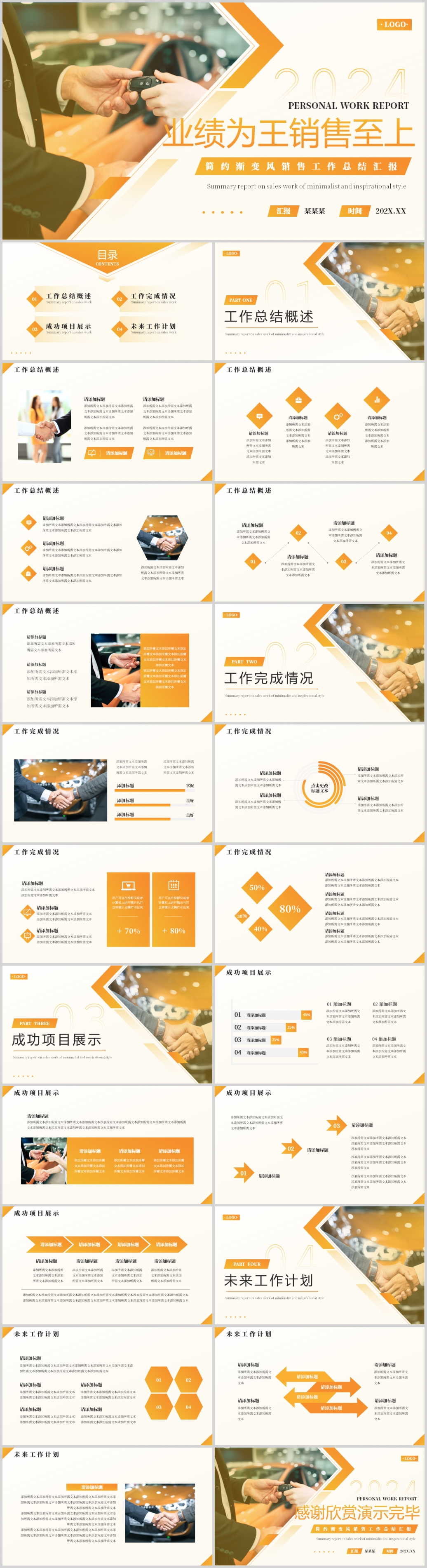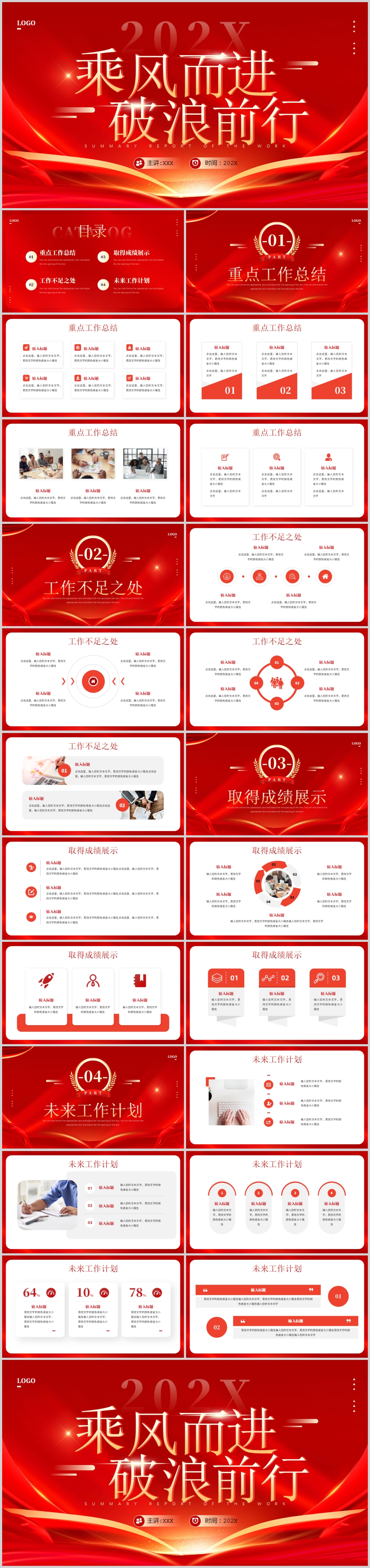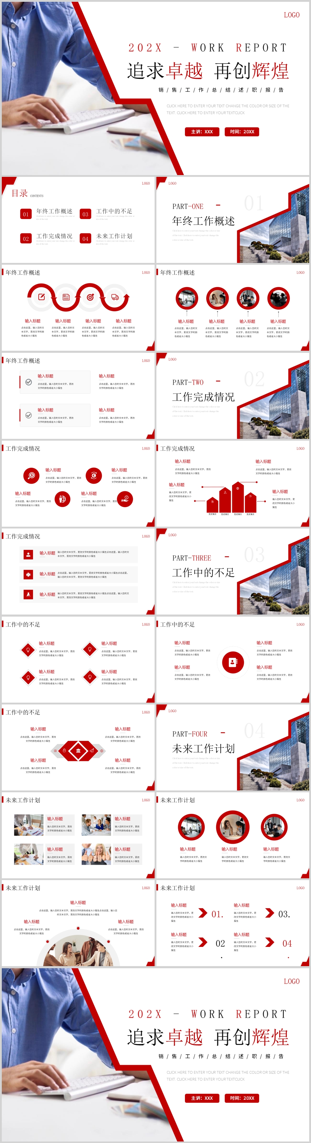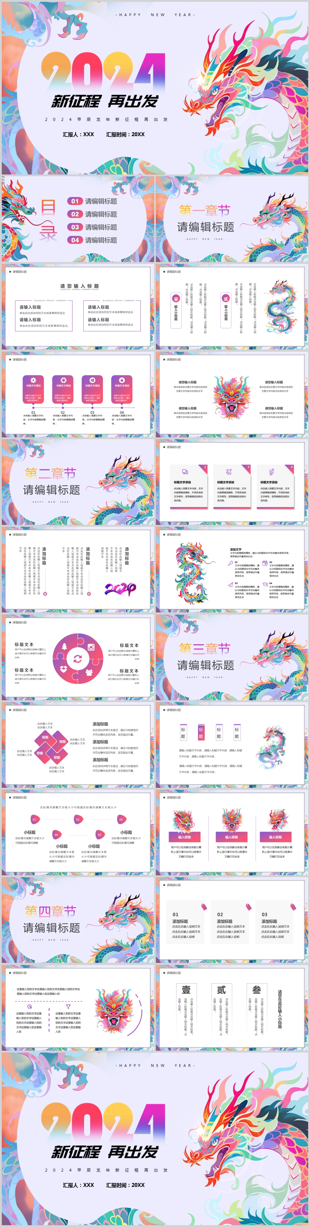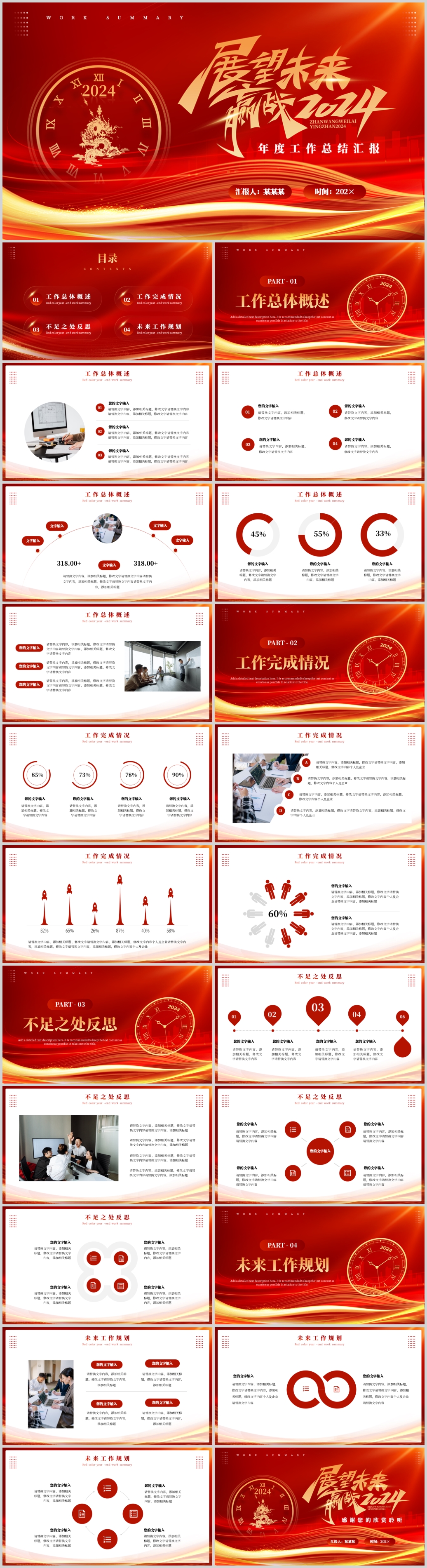 中国风2024新征程再出发年终总结工作总结工作汇报PPT