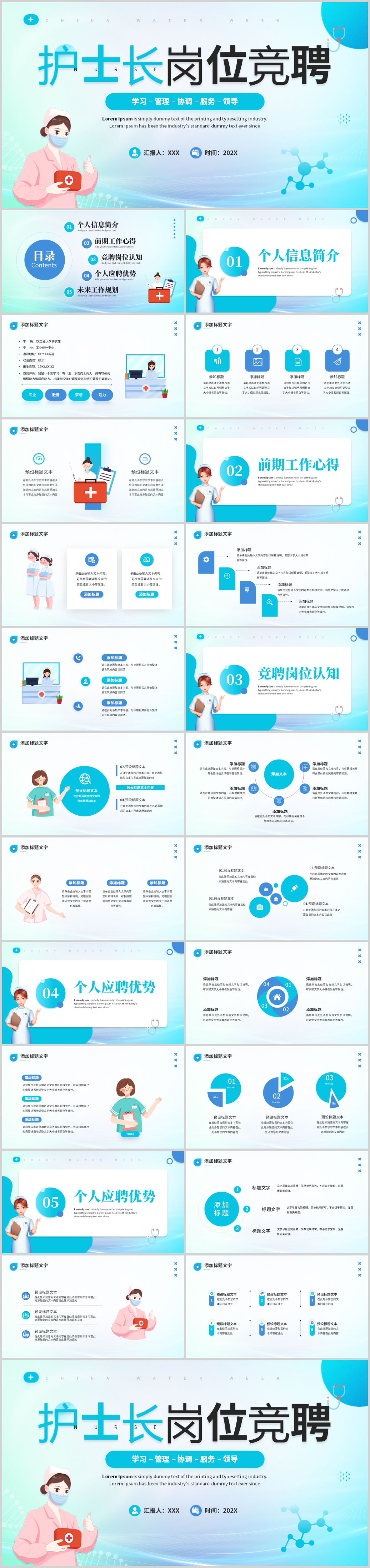蓝色卡通护士长岗位竞聘个人简历PPT模板