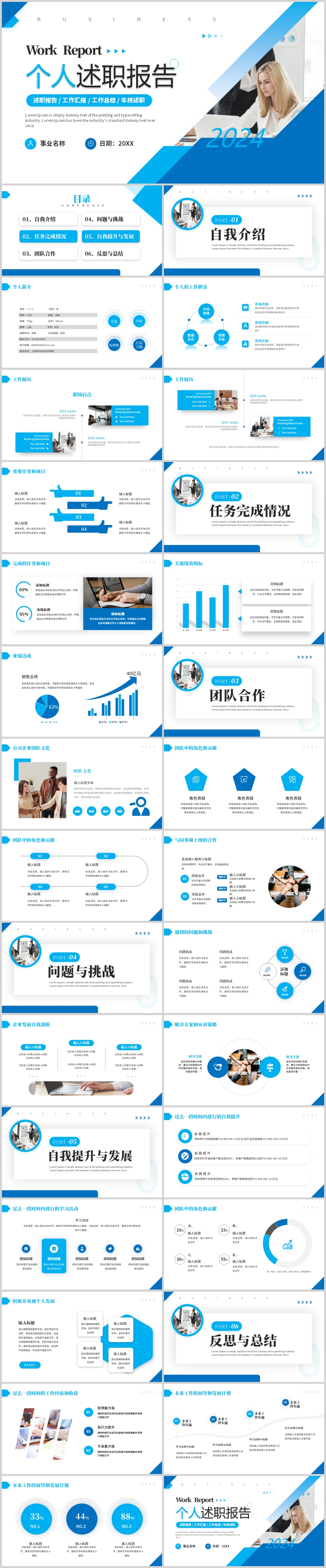 蓝色商务通用述职报告工作汇报工作计划ppt