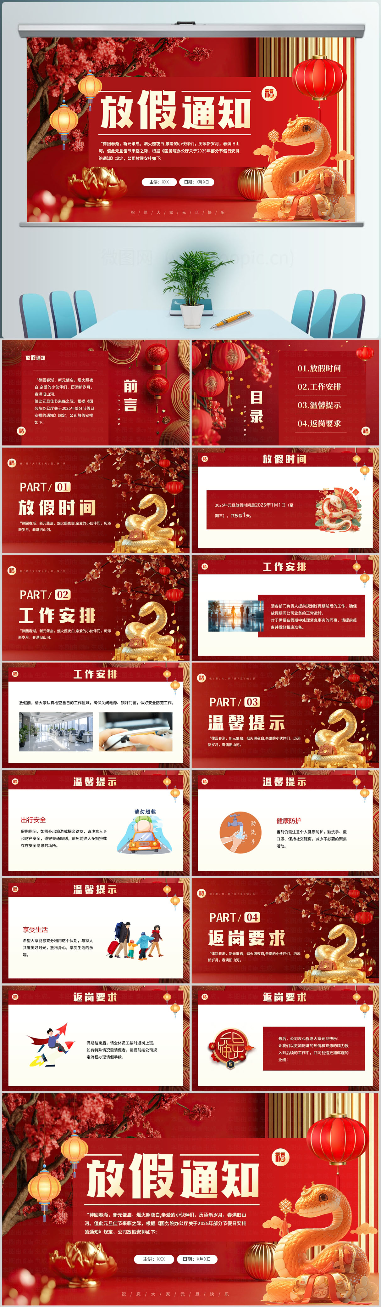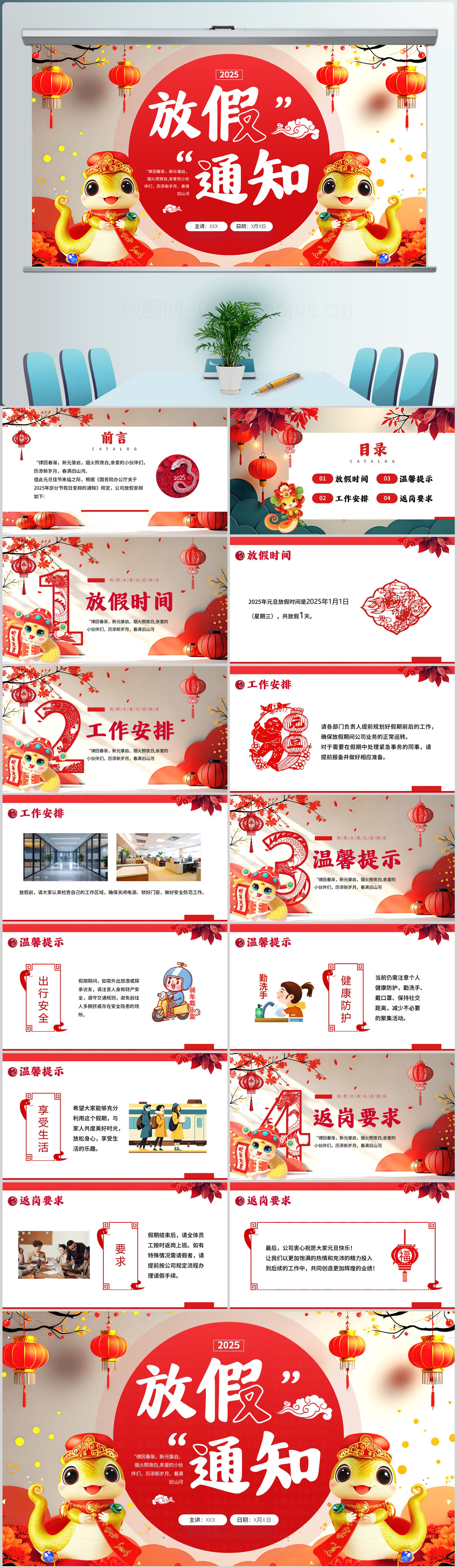 红色喜庆中国风2025蛇年元旦年会颁奖PPT模板