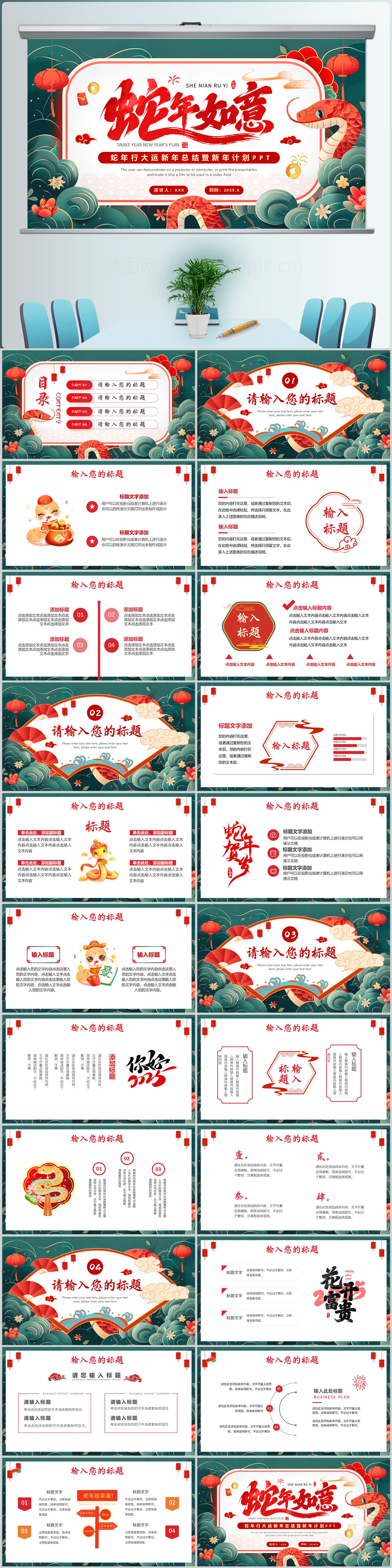 蛇年行大运新年总结暨新年计划PPT模版设计
