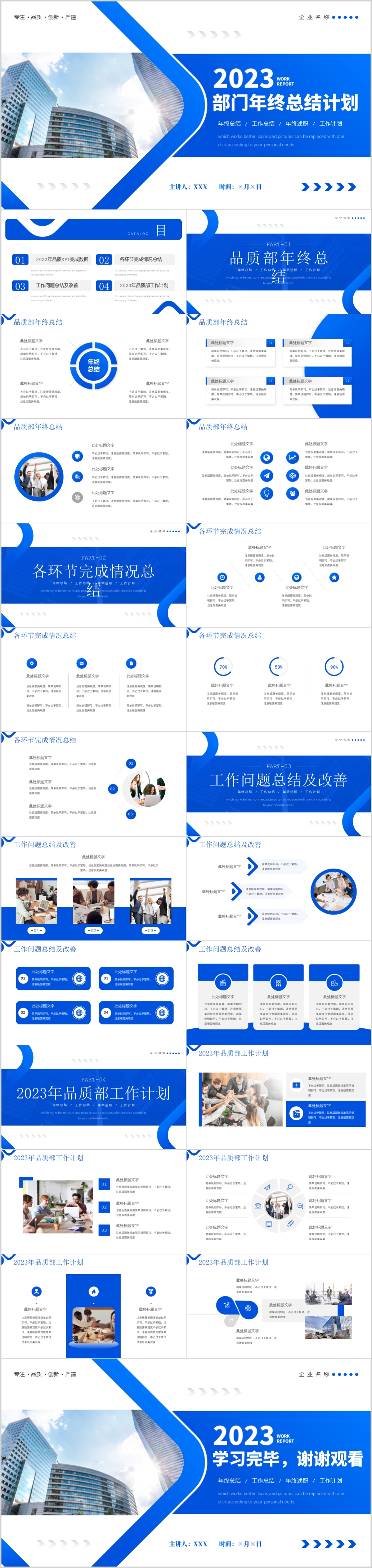 2023年蓝色部门年终总结计划ppt模板