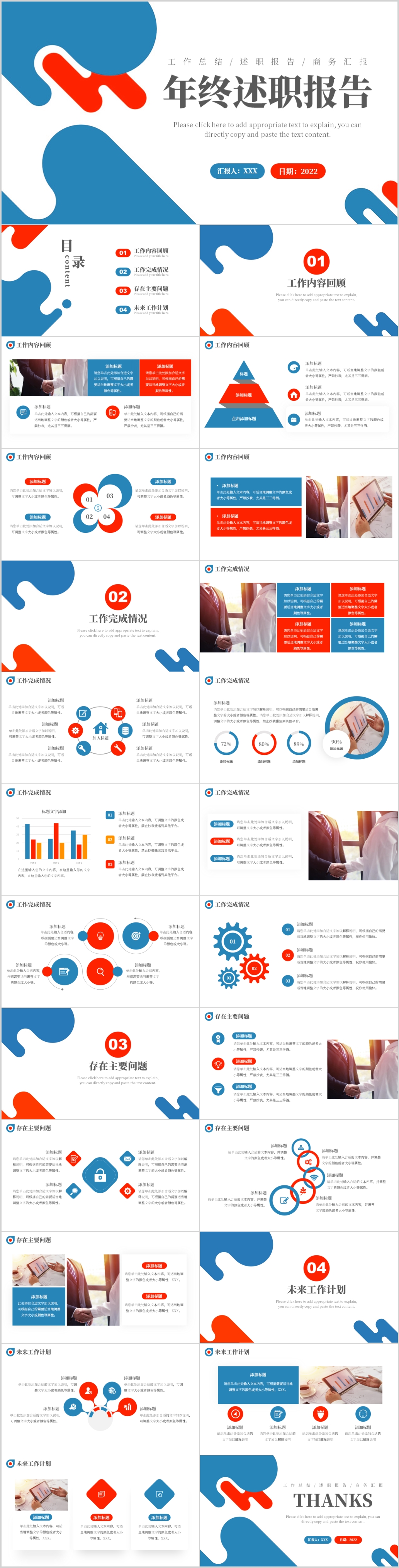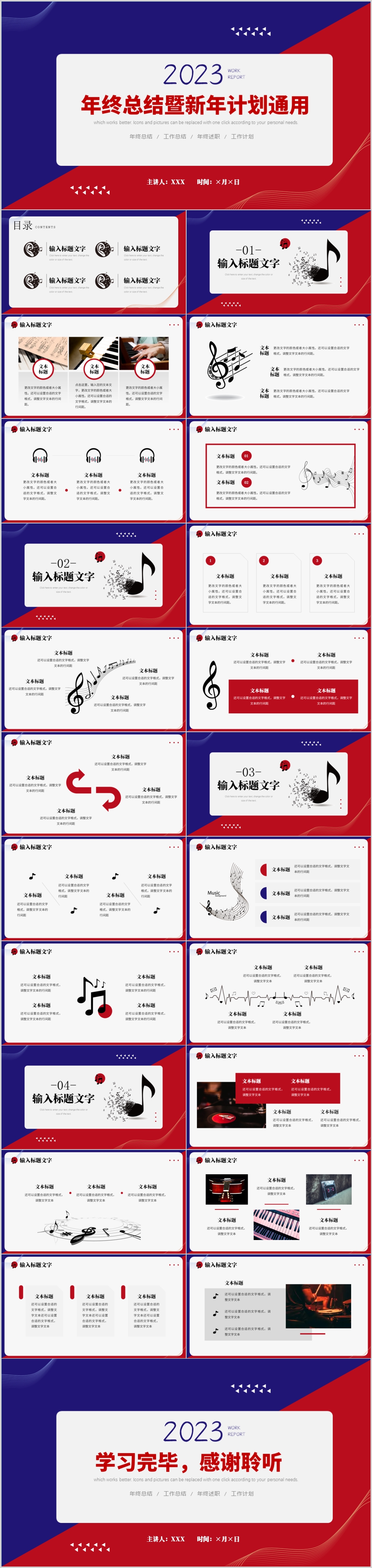 2023红蓝拼色创意年终总结暨新年计划ppt模板