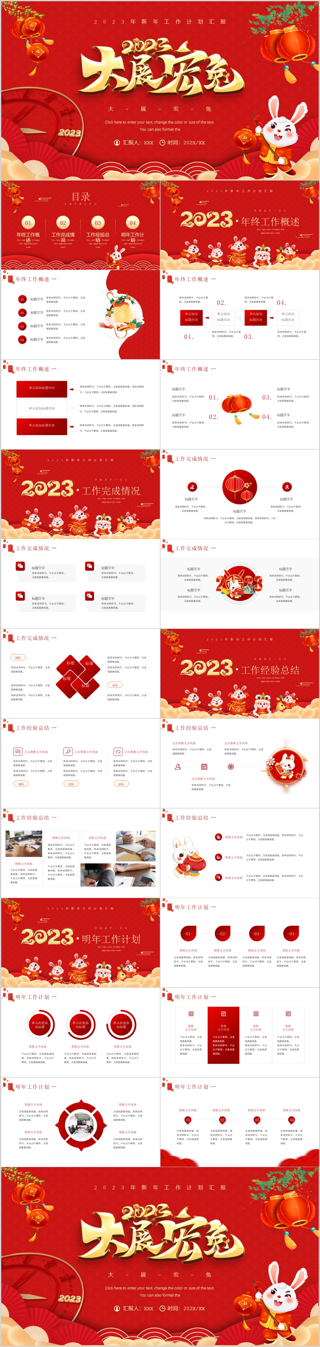 2023年红色兔年年终工作总结工作计划ppt模板