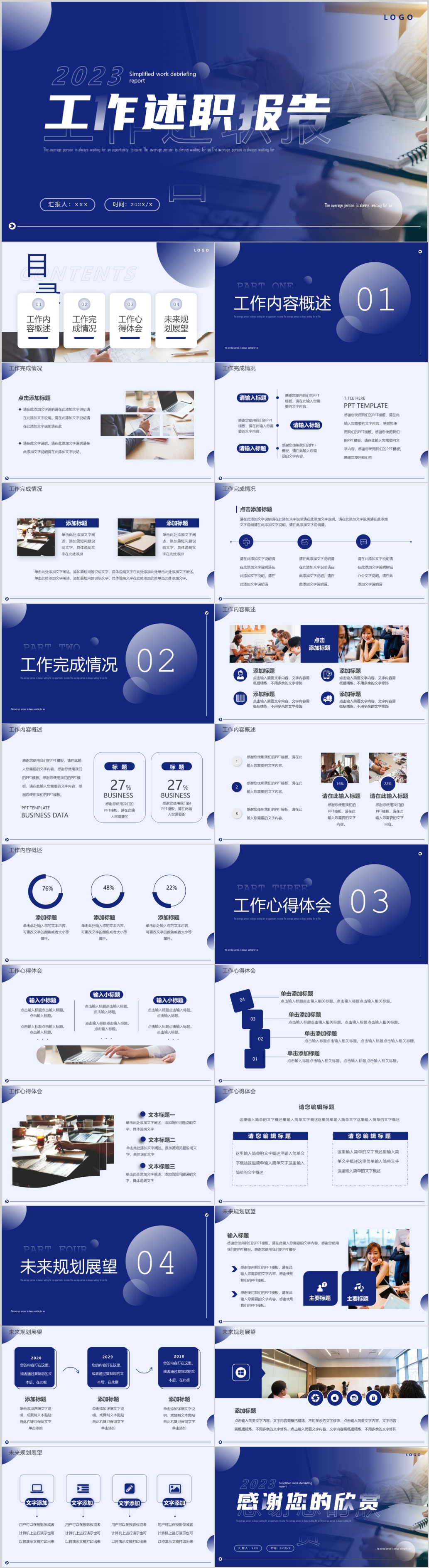 2023年蓝色大气新年计划工作总结述职报告PPT模板