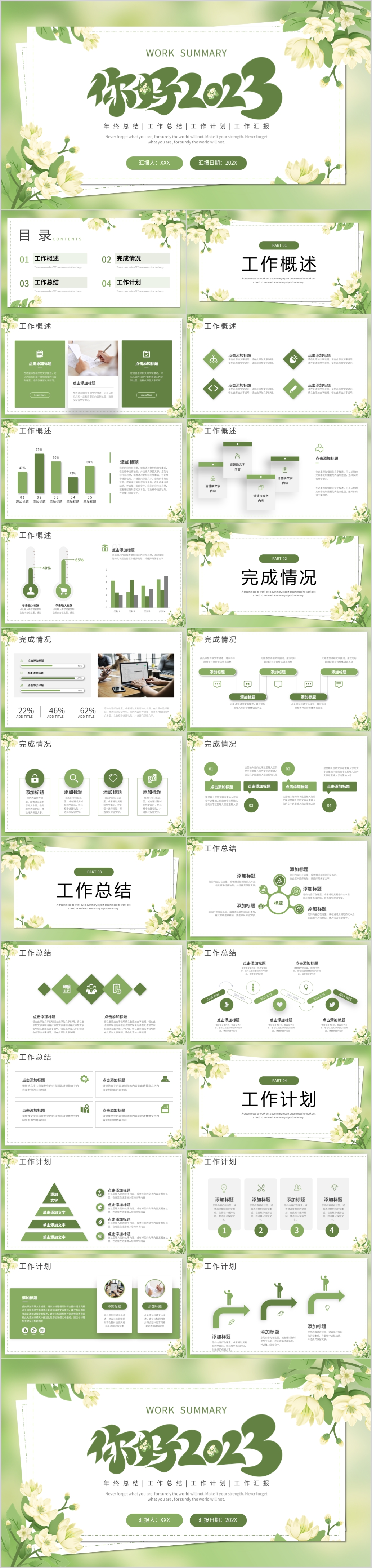 绿色小清新你好2023通用工作总结计划PPT模板