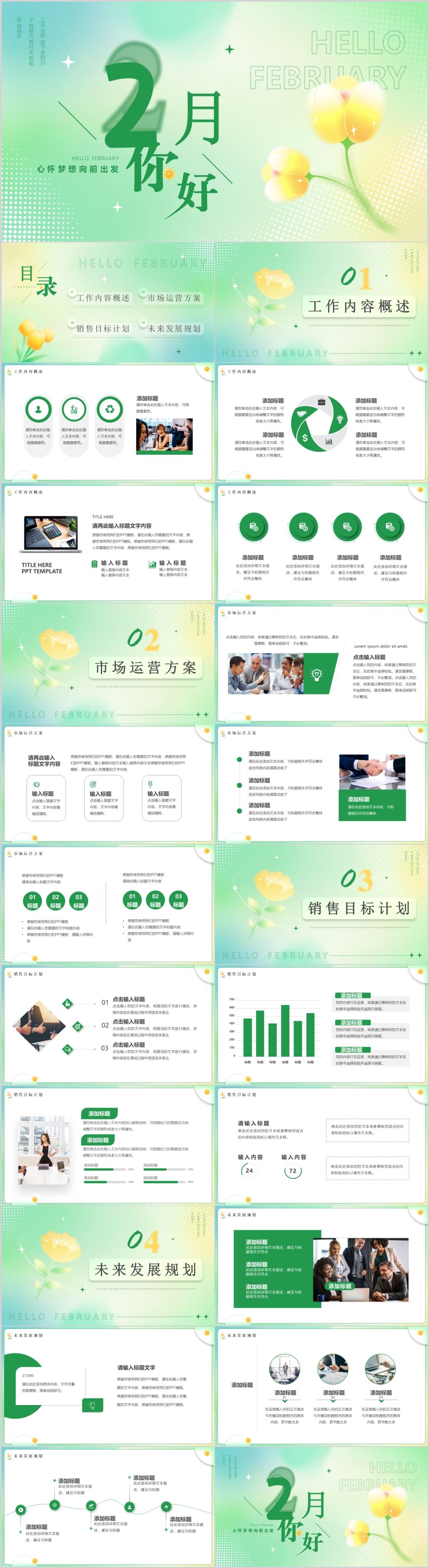 绿色清新你好2月新年工作计划汇报ppt模板