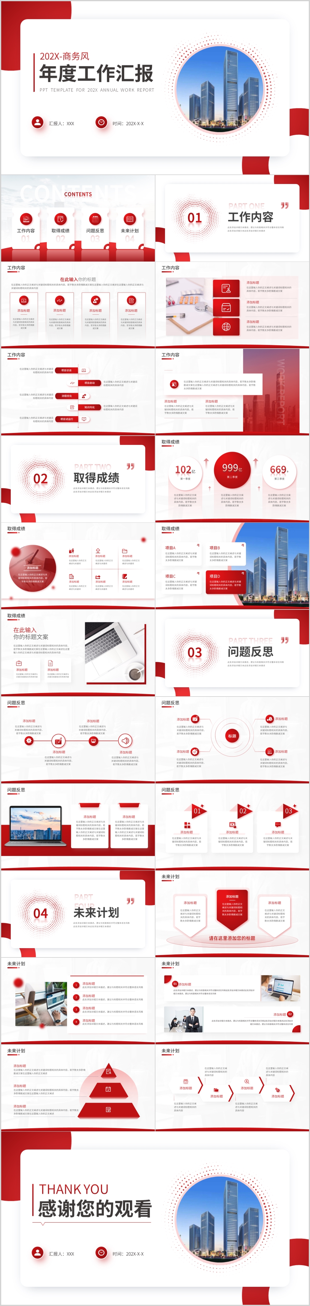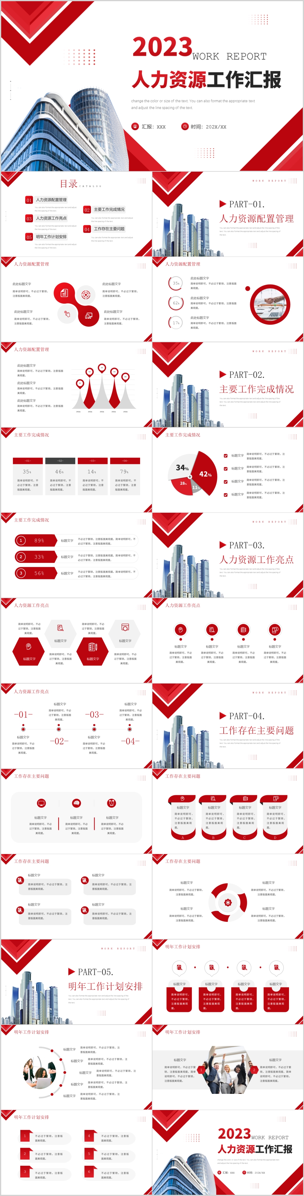 2023红色商务年度工作总结汇报工作计划ppt模板