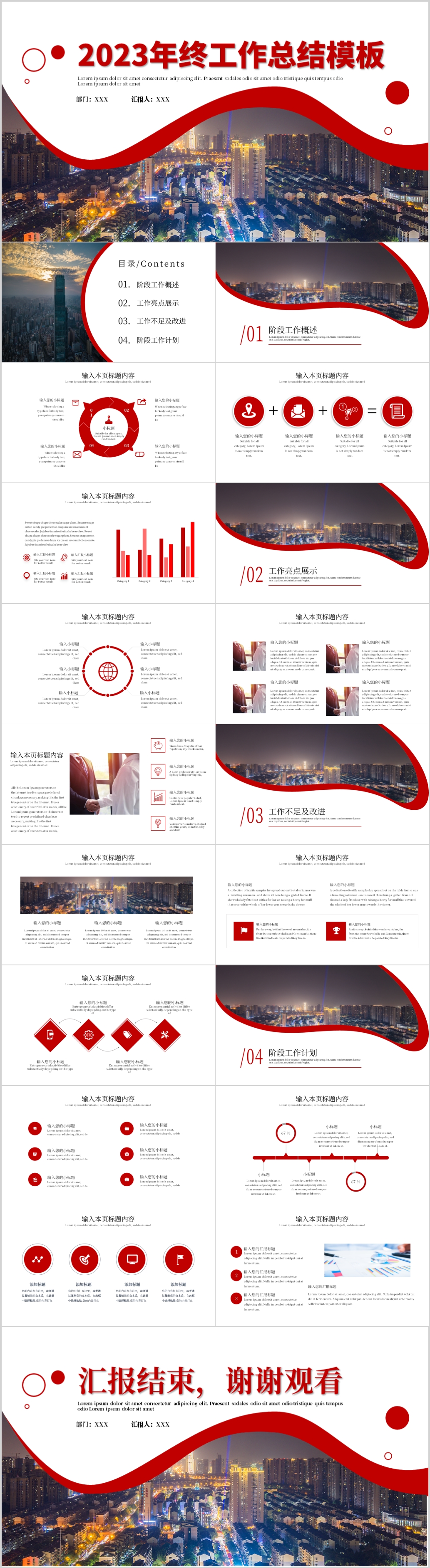 2023红色简约年终工作总结新年计划ppt模板