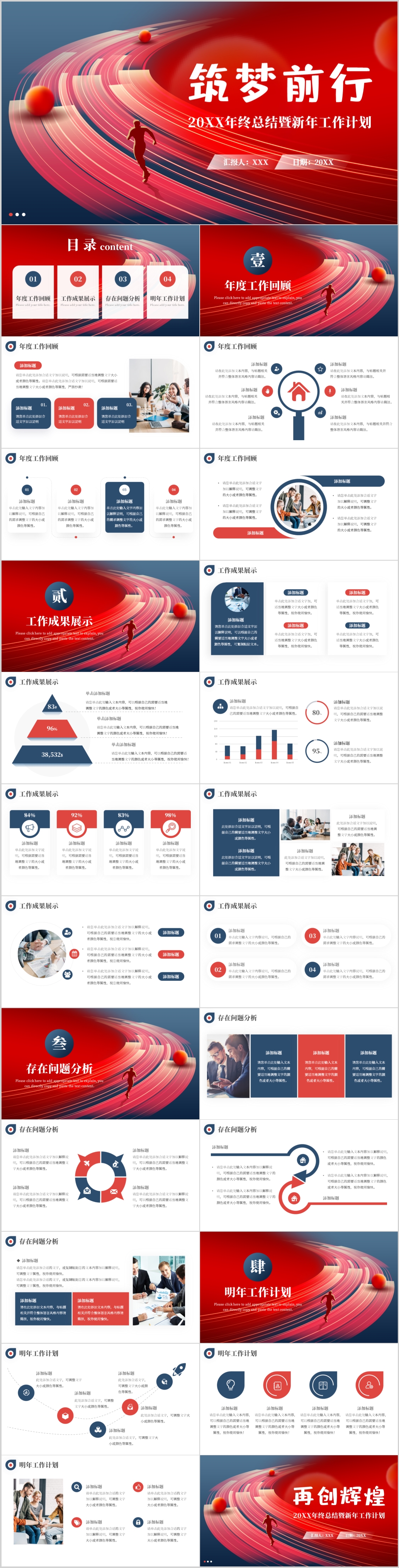 红色大气2023筑梦前行商务通用工作总结ppt模板