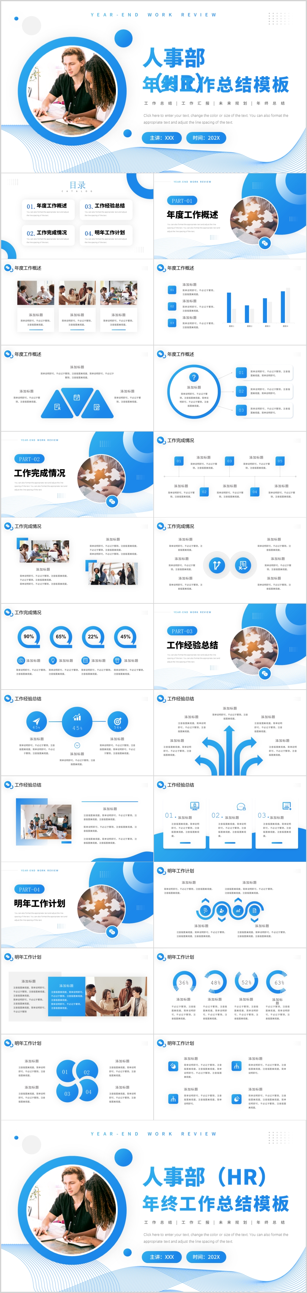 蓝色2023HR人事行政人力资源总结ppt模板工作总结