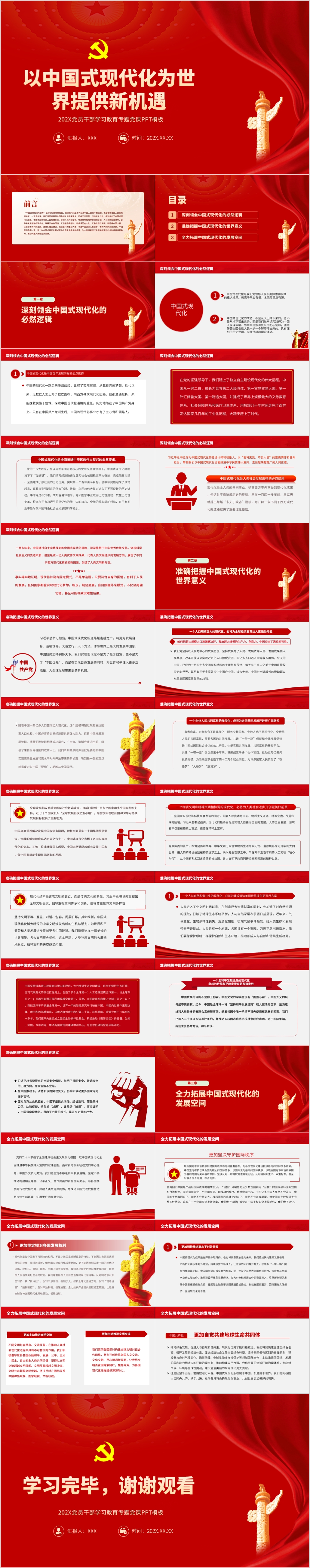 中国式现代化为世界提供新机遇党员教育专题党课PPT模板(内含WORD演讲稿)