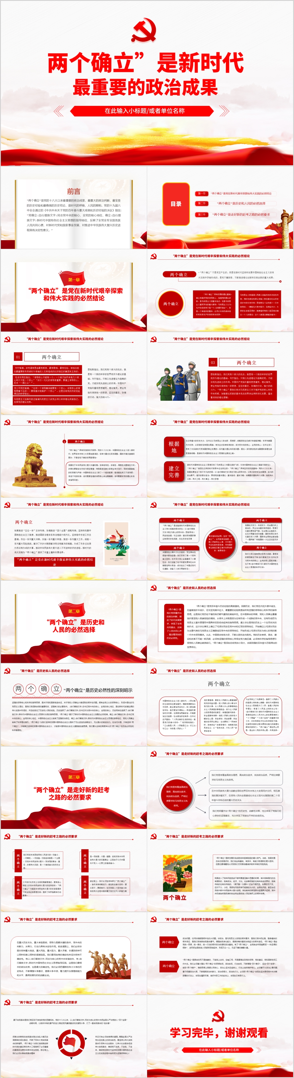 学习两个确立是新时代 最重要的政治成果党员教育专题党课PPT模板