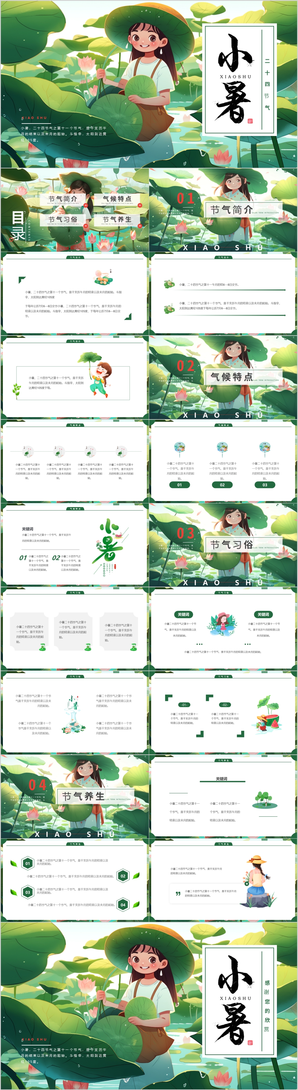 小清新小暑二十四节气小暑节小暑动态ppt模板