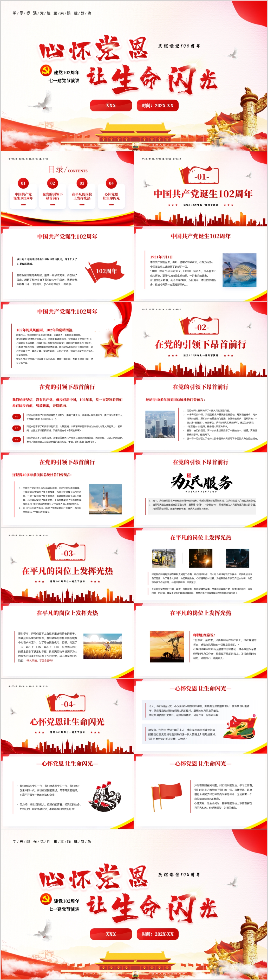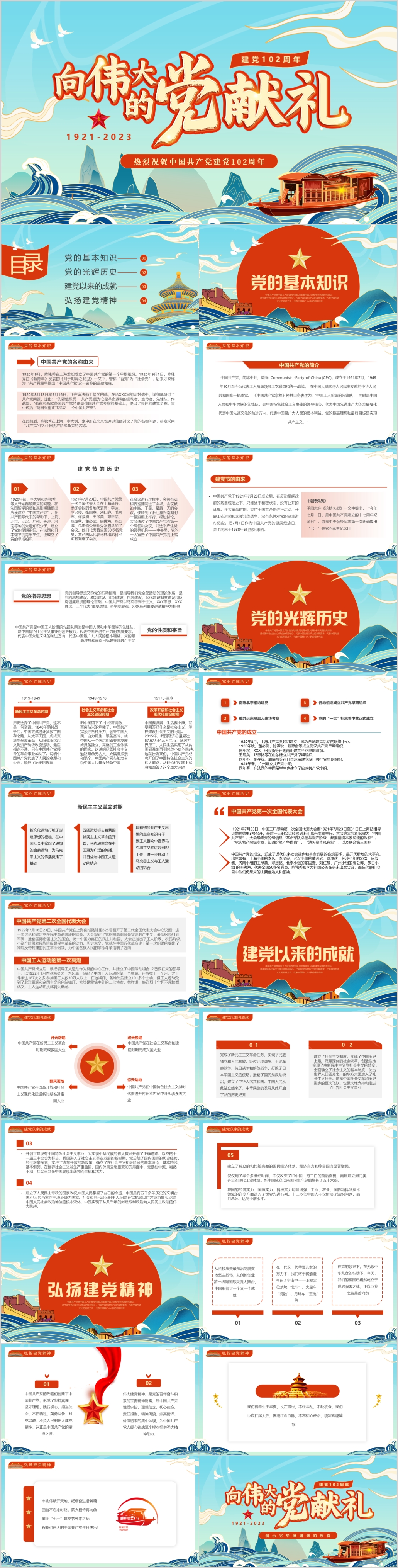 迎七一建党节心怀党恩建党102周年党史教育党课PPT模板