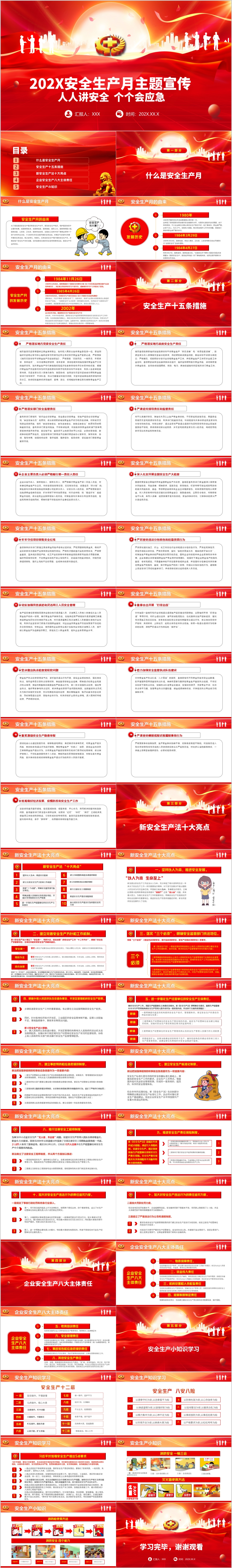 红色2023年第22个全国安全生产月安全教育主题宣传培训PPT模板