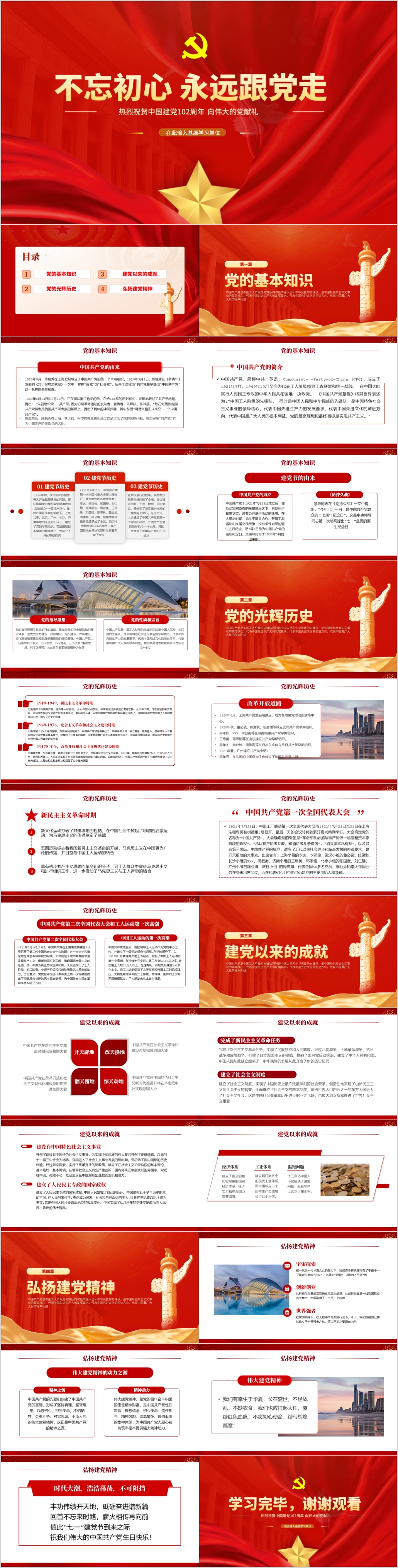 红色七一建党节102周年永远跟党走弘扬建党精神专题党课PPT模板