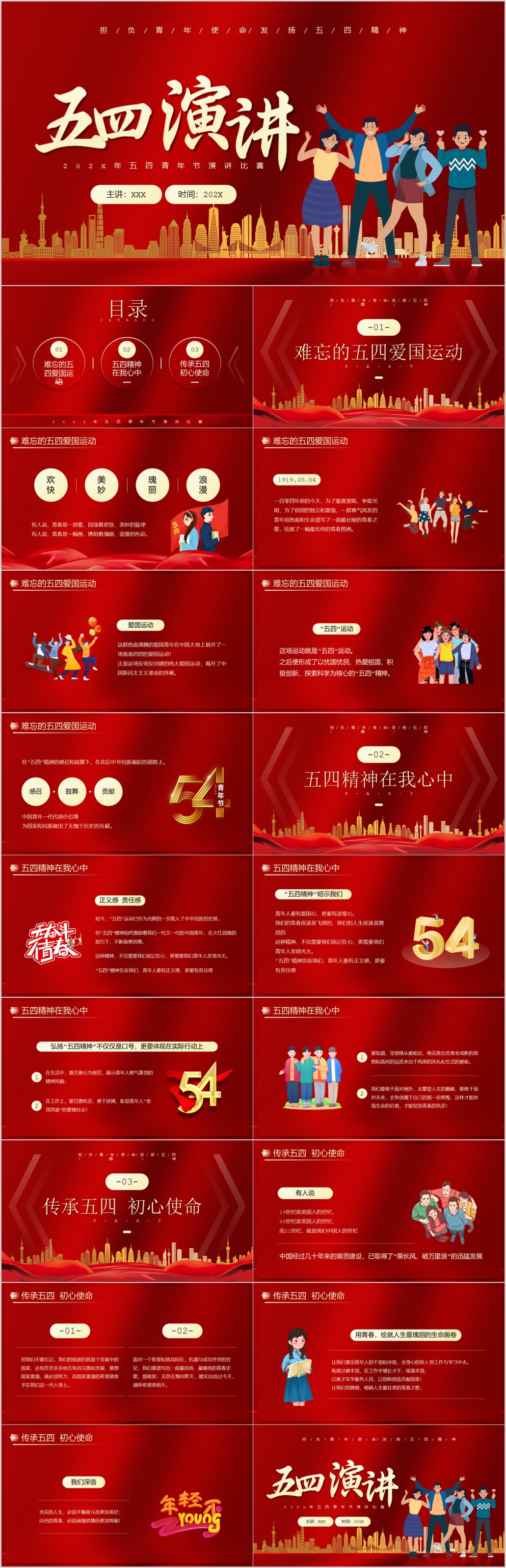 红色大气五四青年节五四精神演讲比赛团课PPT模板