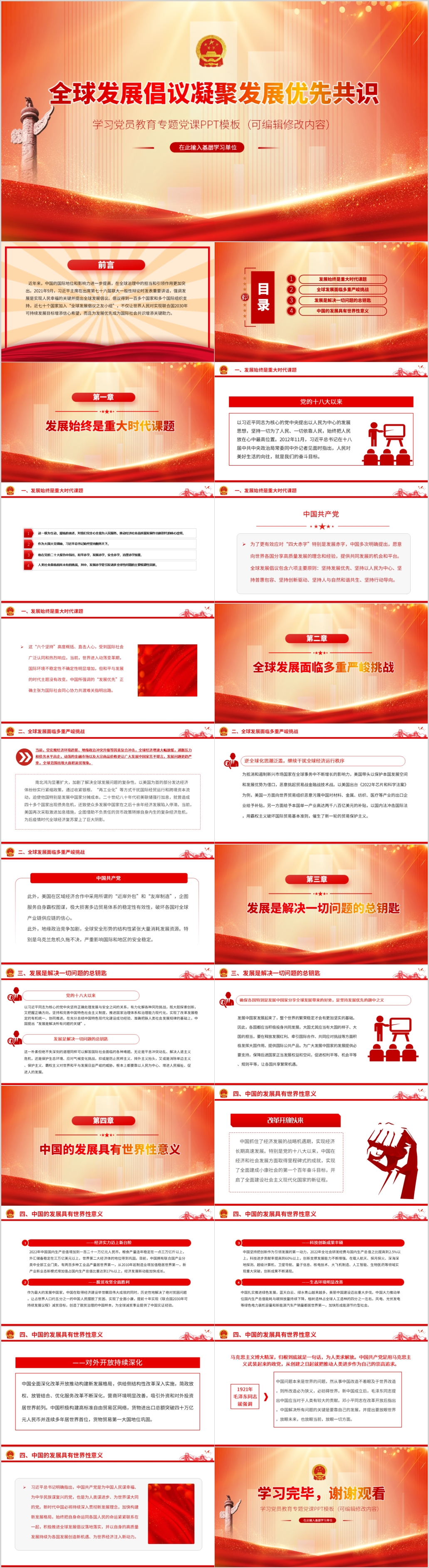 学习全球发展倡议凝聚发展优先共识党员教育专题党课PPT模板(内含WORD演讲稿
