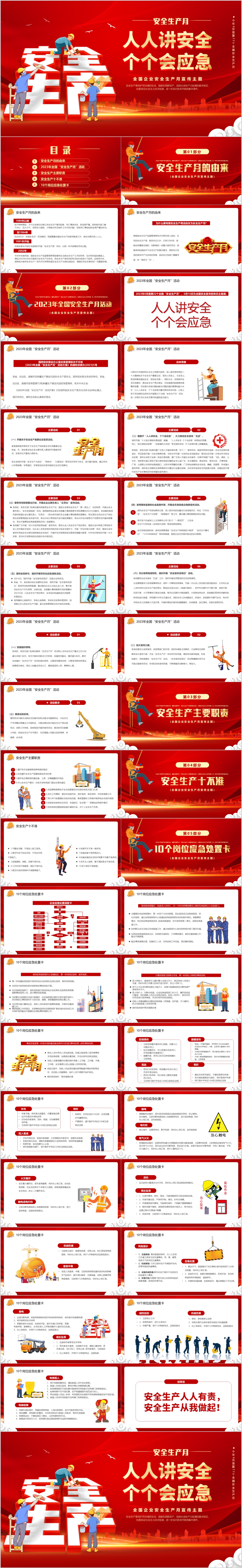 2023安全生产月主题宣传人人讲安全个个会应急安全教育培训课件PPT模板