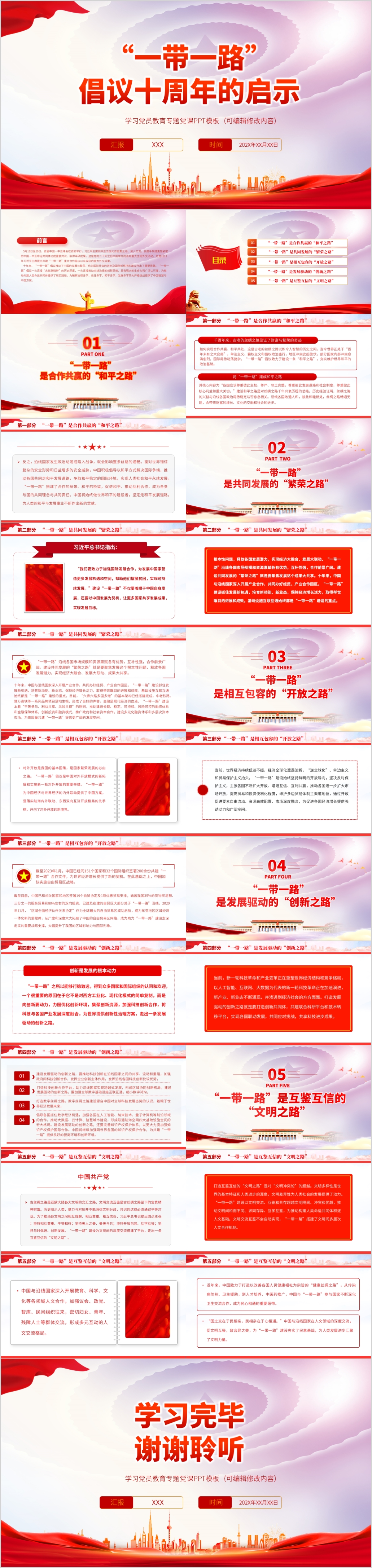 一带一路十周年十年征程再出发主题演讲汇报培训ppt模板