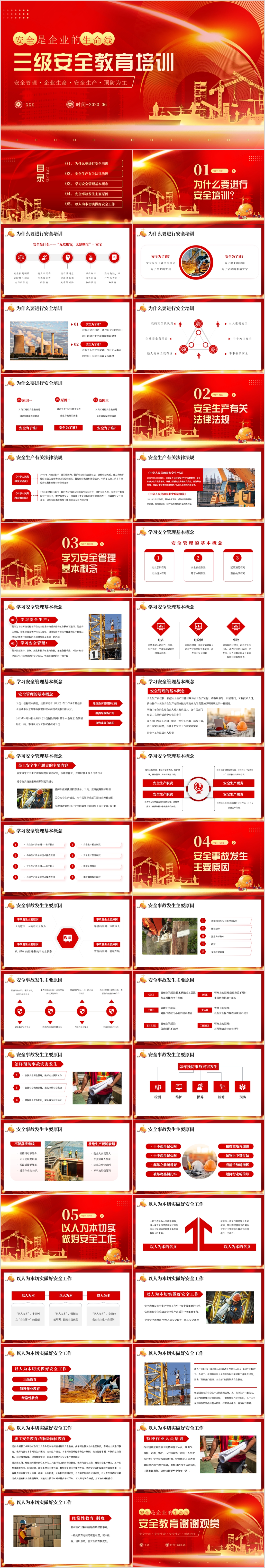 红色企业三级安全生产月主题活动教育培训ppt模板