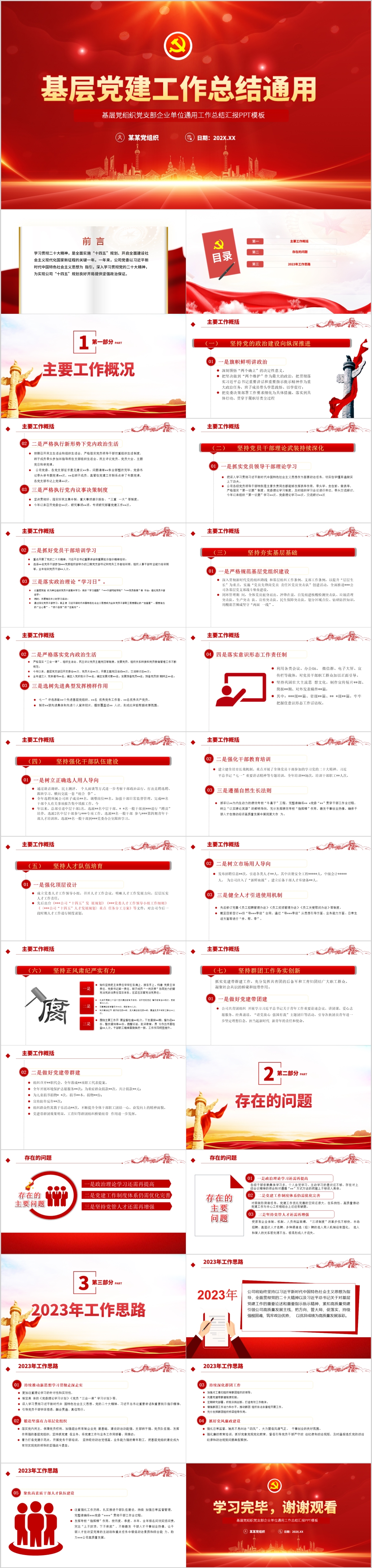 红色2023基层党组织党支部书记党建工作述职报告ppt模板
