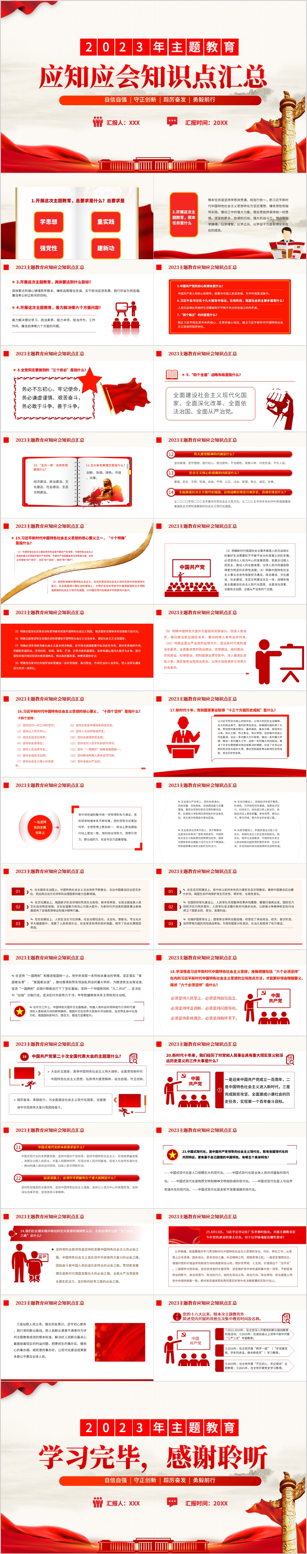 2023年开展主题教育工作应知应会汇总专题党课PPT模板