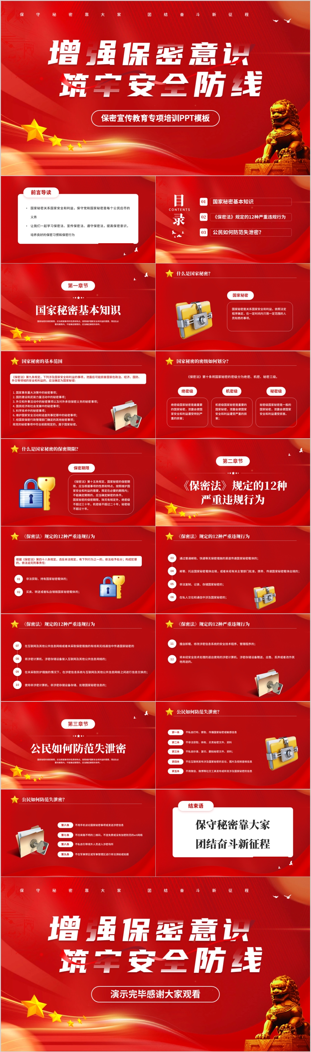 红色增强保密意识筑牢安全防线保密工作培训课件PPT模板