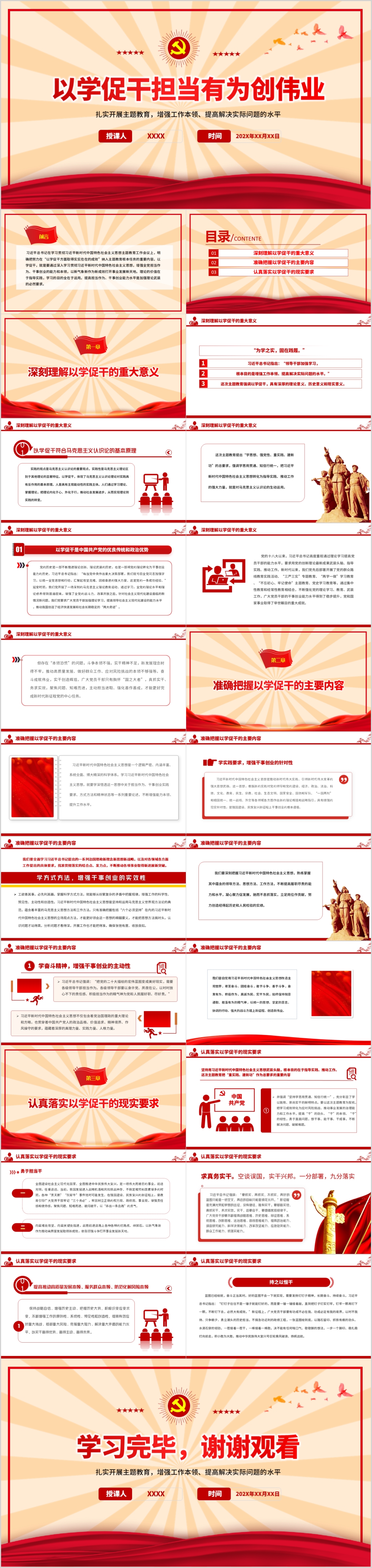 以学促干担当有为创伟业主题教育工作党课PPT模板