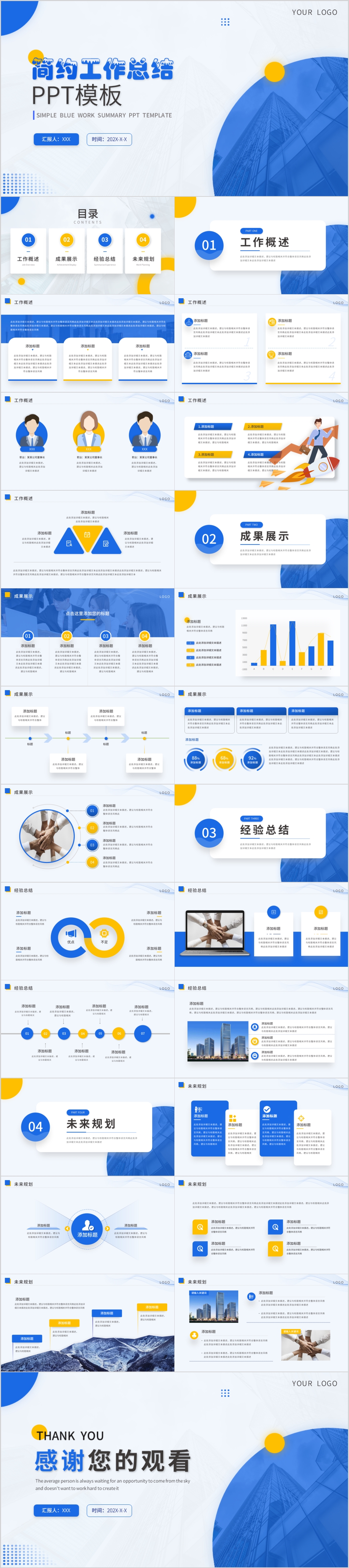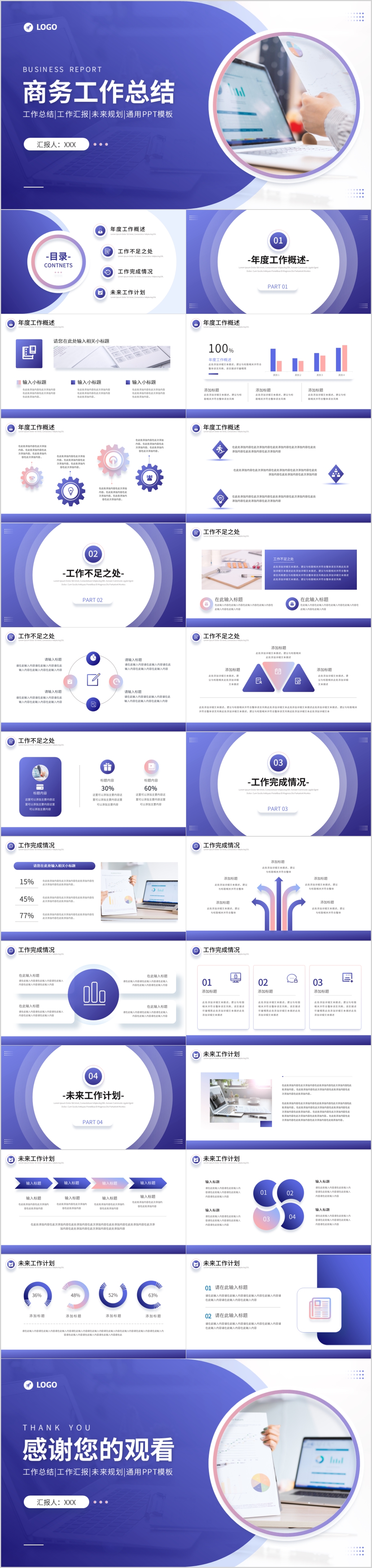 蓝色2023年终商务工作总结汇报计划报告ppt模板