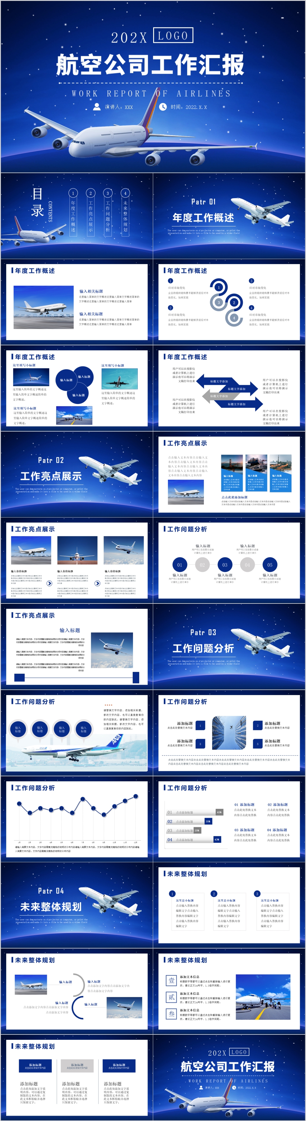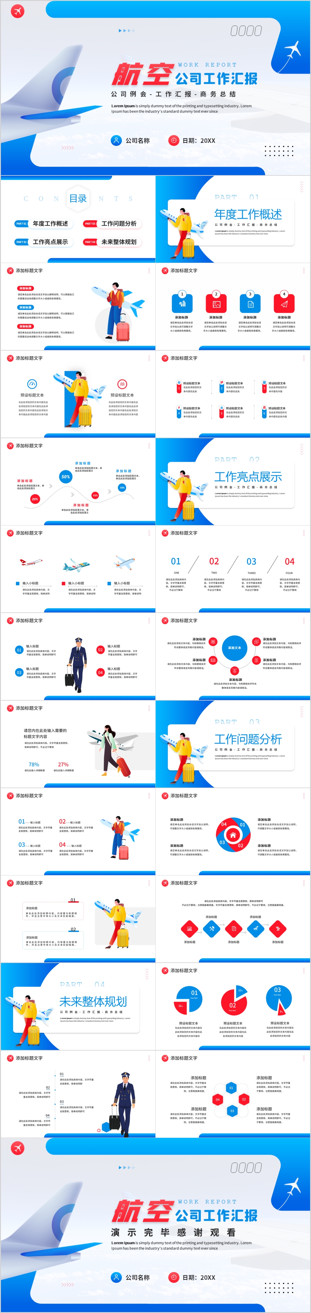蓝色简约航空公司年终工作汇报总结计划通用ppt模板