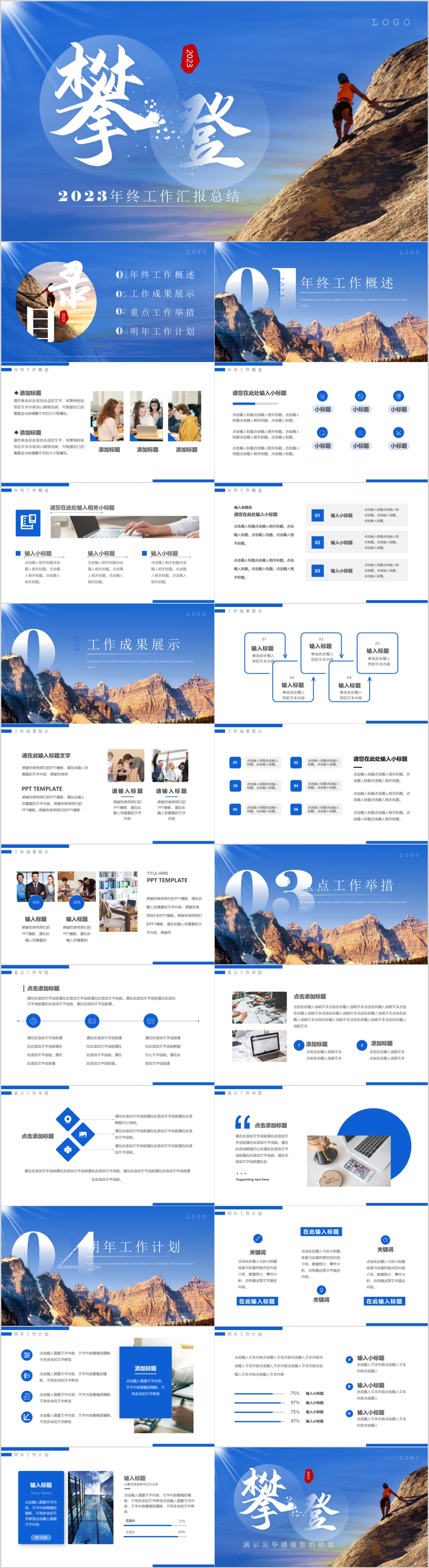 蓝色2023年冲刺激励年终工作汇报总结计划ppt模板