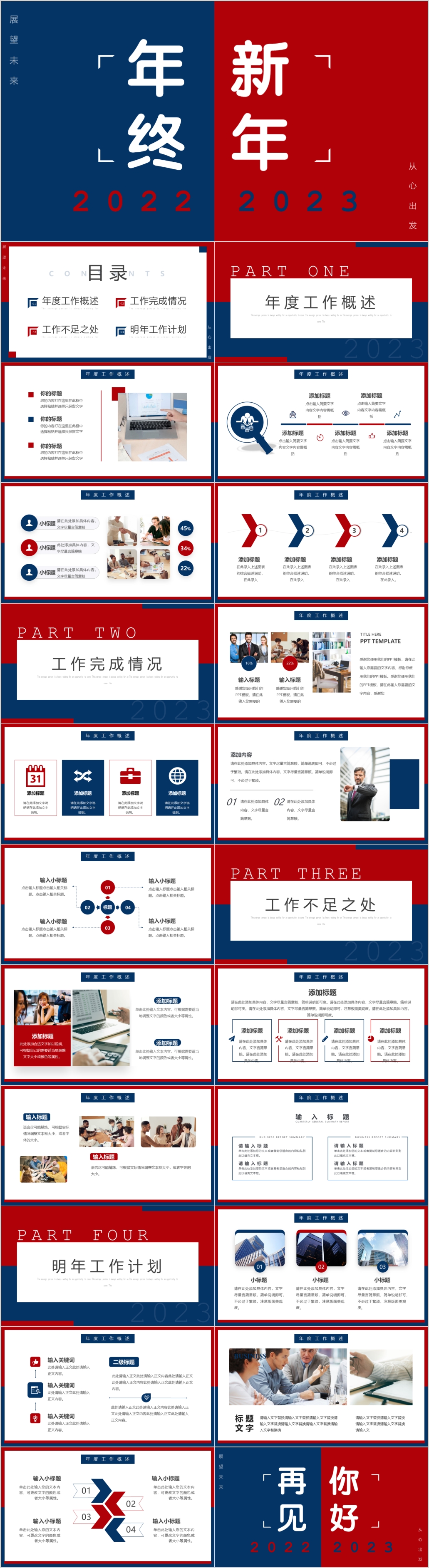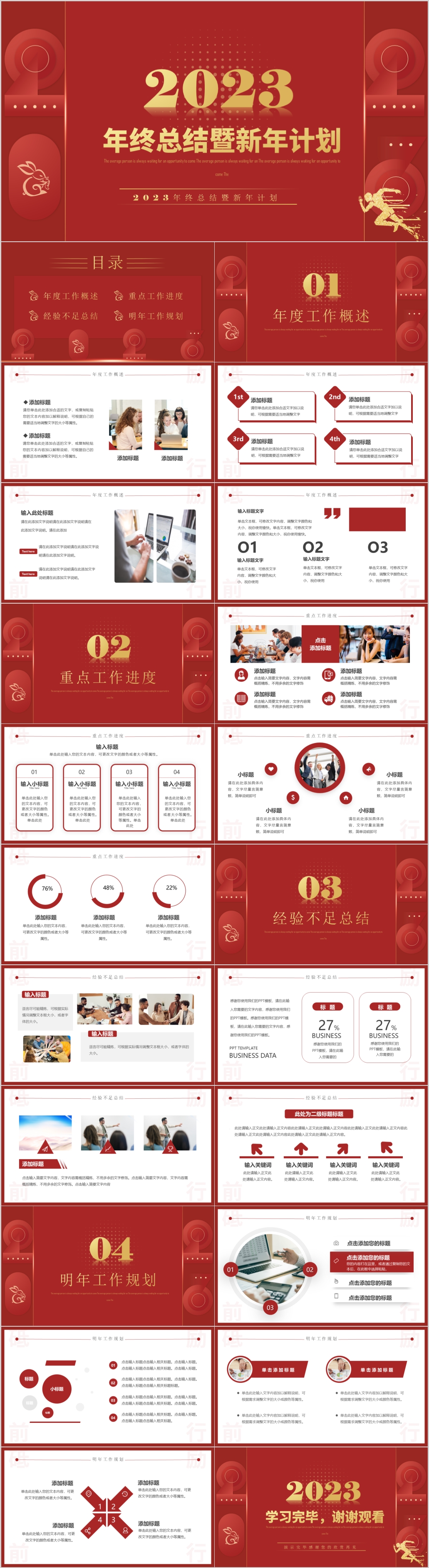 红色2023年年终工作总结暨新年工作计划通用ppt模板