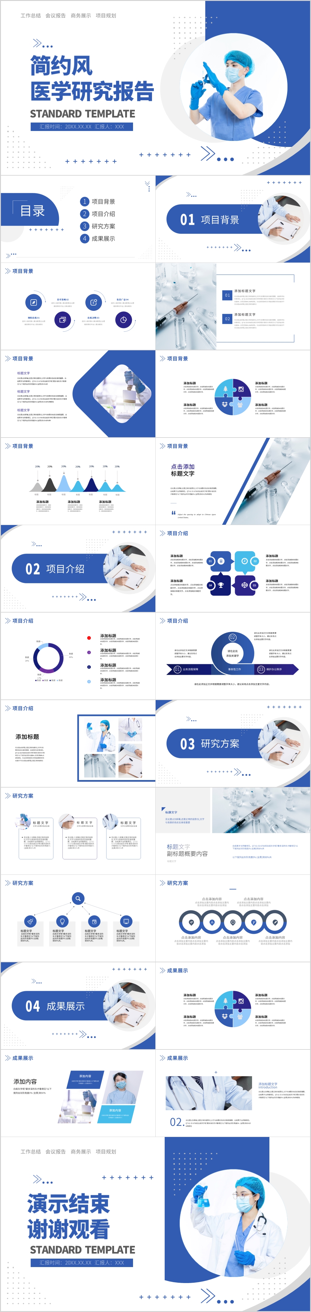 蓝色医疗科研研究产品宣传工作汇报报告ppt模板