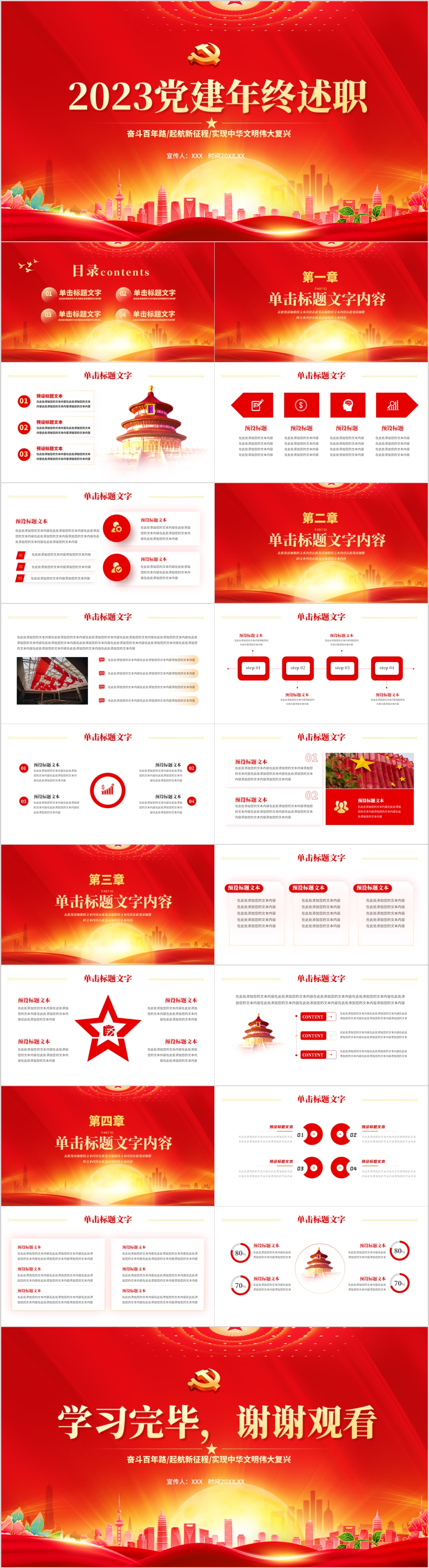 2023年党建年终工作述职报告新年计划ppt模板