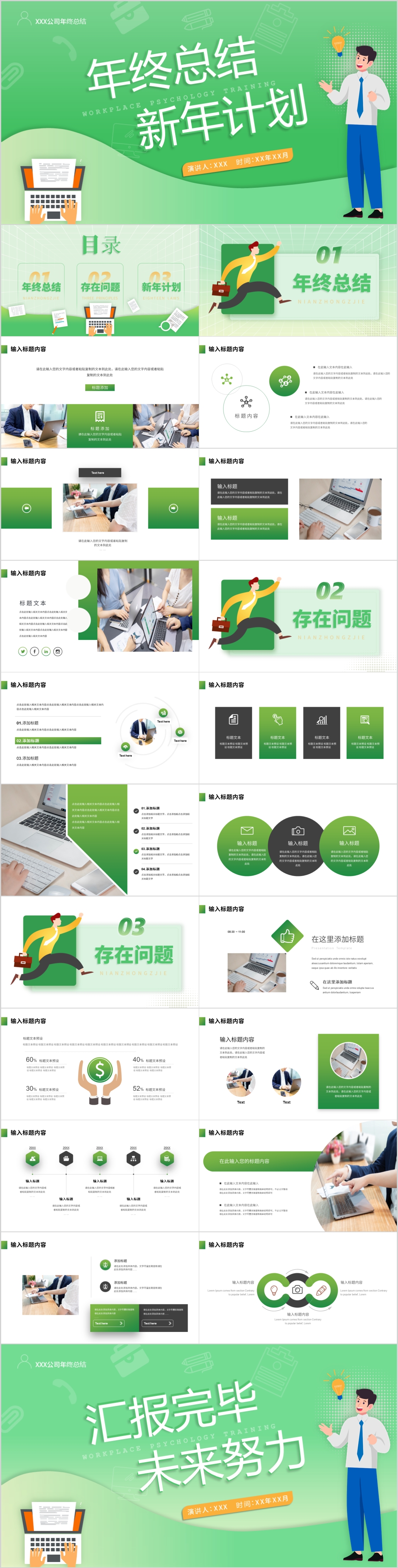 绿色大气年终总结暨新年计划工作报告ppt模板