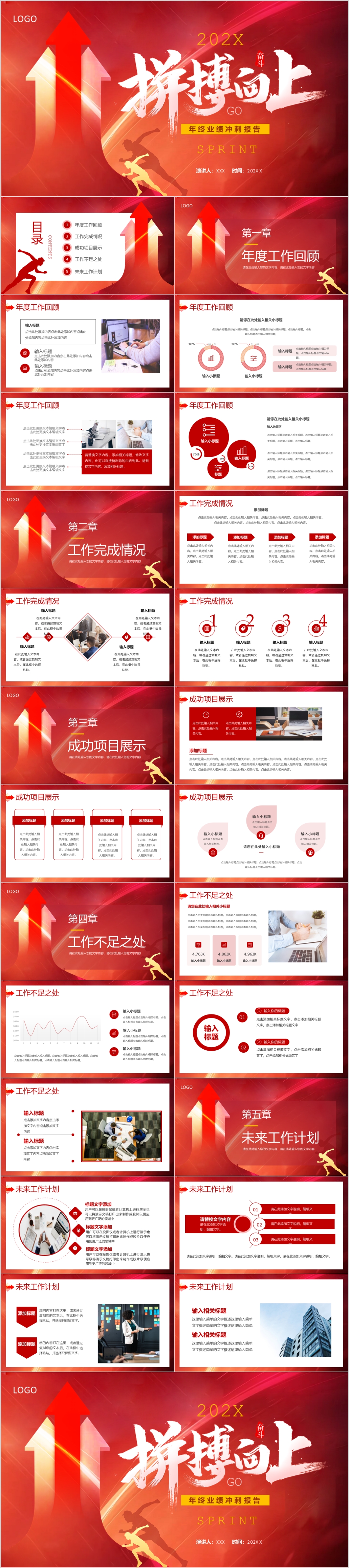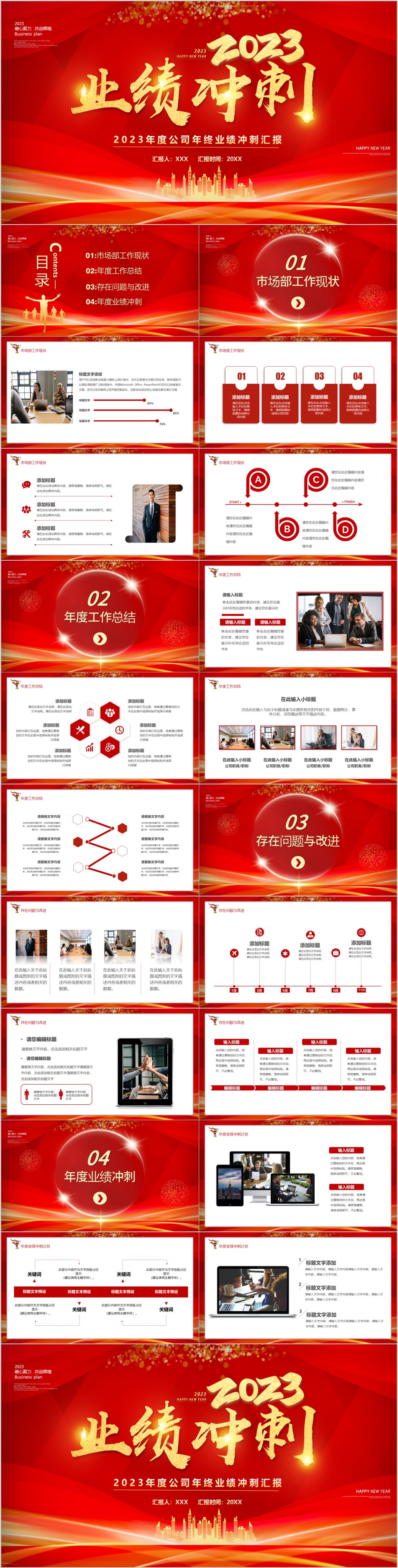 2023年红色年终业绩冲刺工作总结汇报计划ppt模板