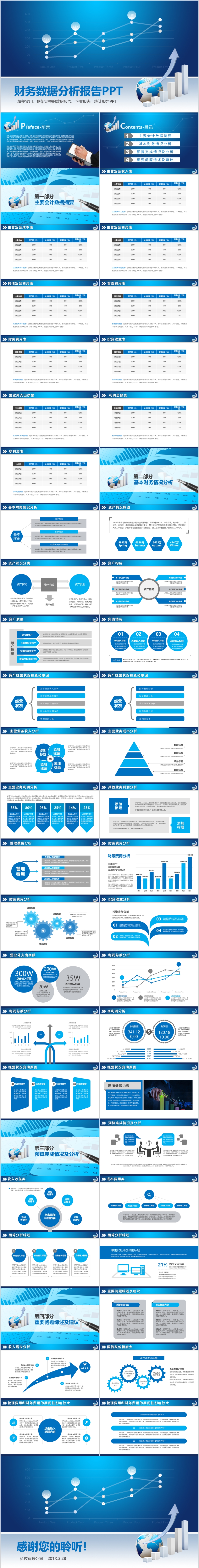蓝色2023年财务数据分析报告企业报表统计总结计划ppt模板