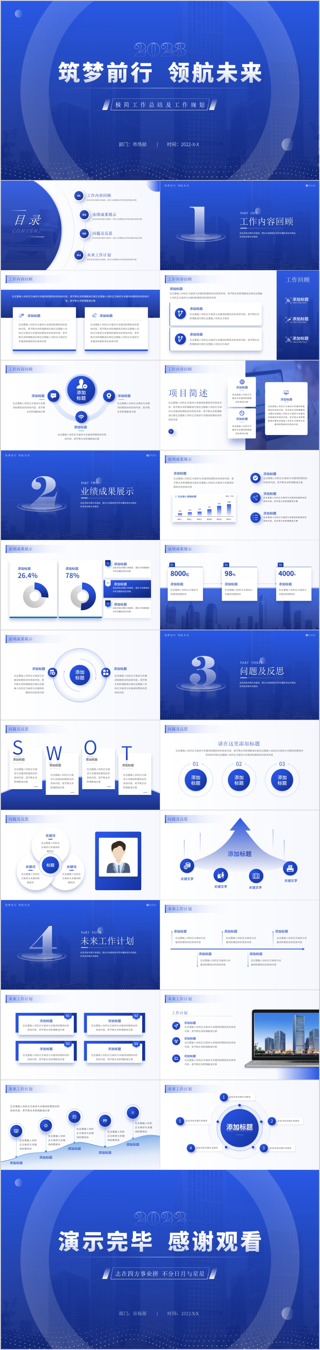 2023年蓝色筑梦未来企业年终总结新年计划ppt模板