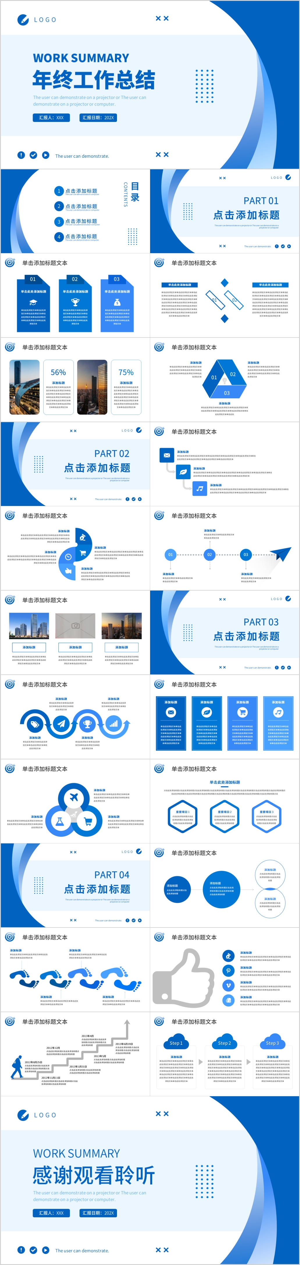 2023年蓝色年终总结述职报告新年计划动态ppt模板