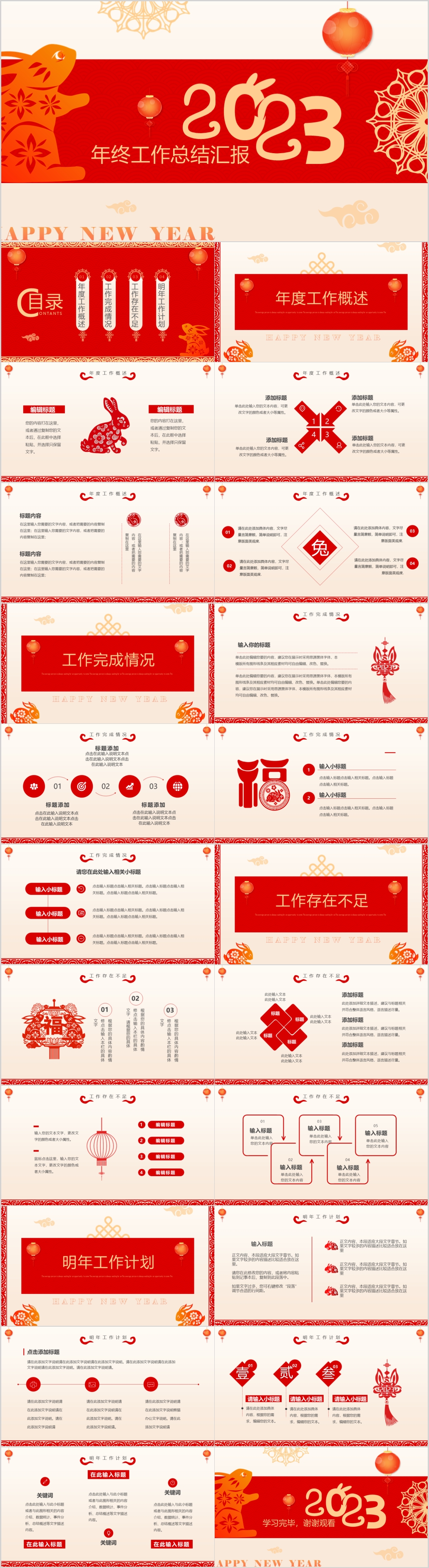 红色2023年兔年新征程再跨越年终总结暨新年计划ppt模板