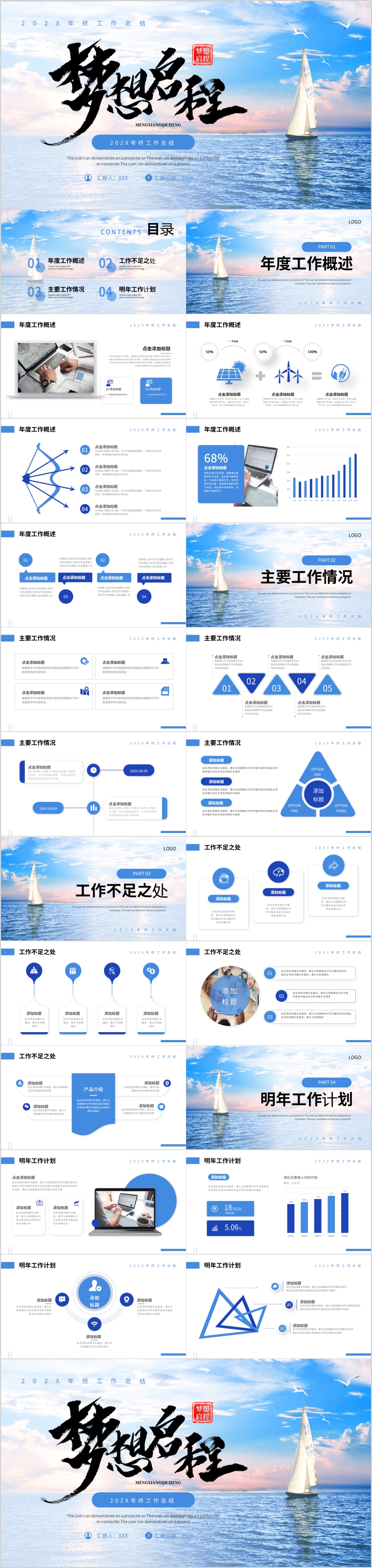 2023年蓝色梦想启程年终工作总结新年计划ppt模板