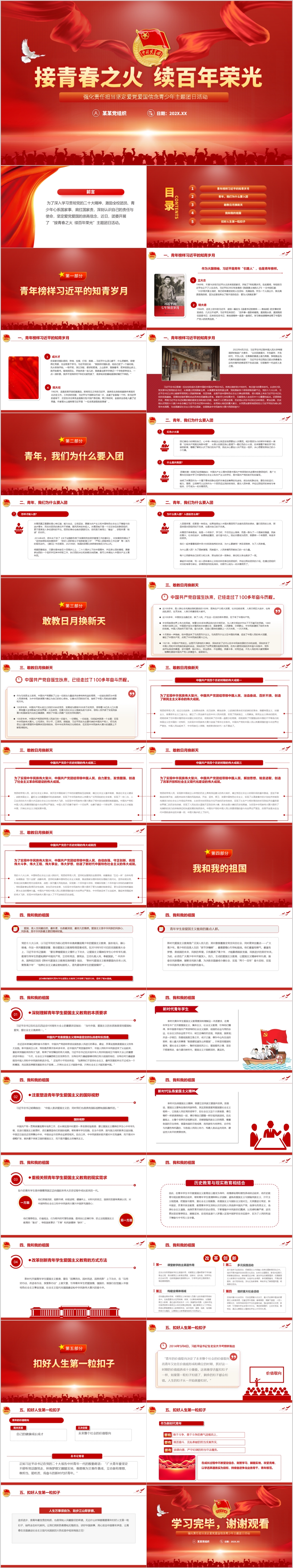 2023弘扬五四运动青年接青春之火续百年荣光团课PPT模板