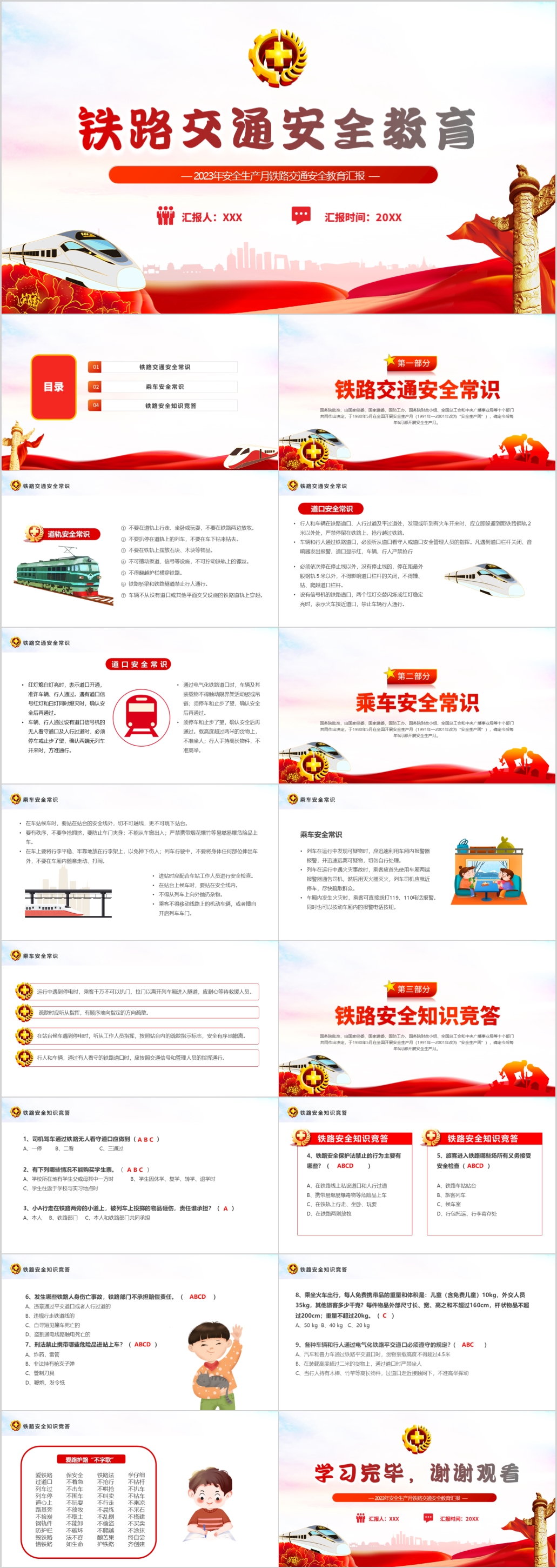 2023年安全生产月铁路交通安全教育汇报通用ppt模板