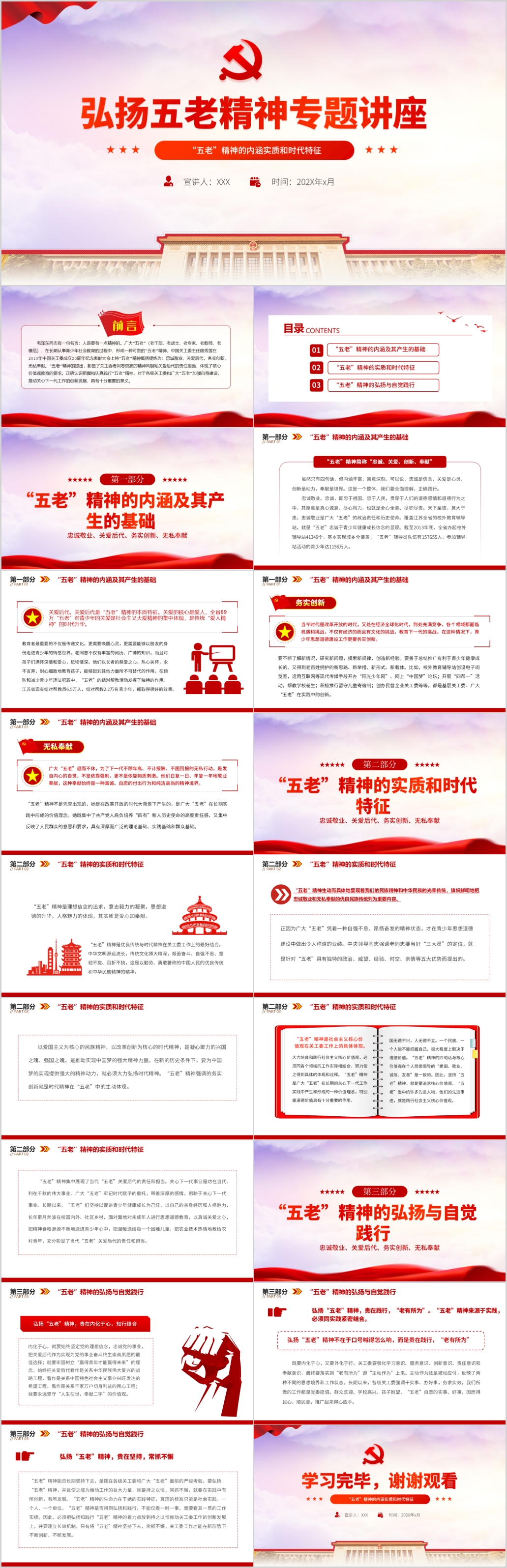 弘扬五老精神党员干部主题教育培训专题党课PPT模板(内含WORD演讲稿)