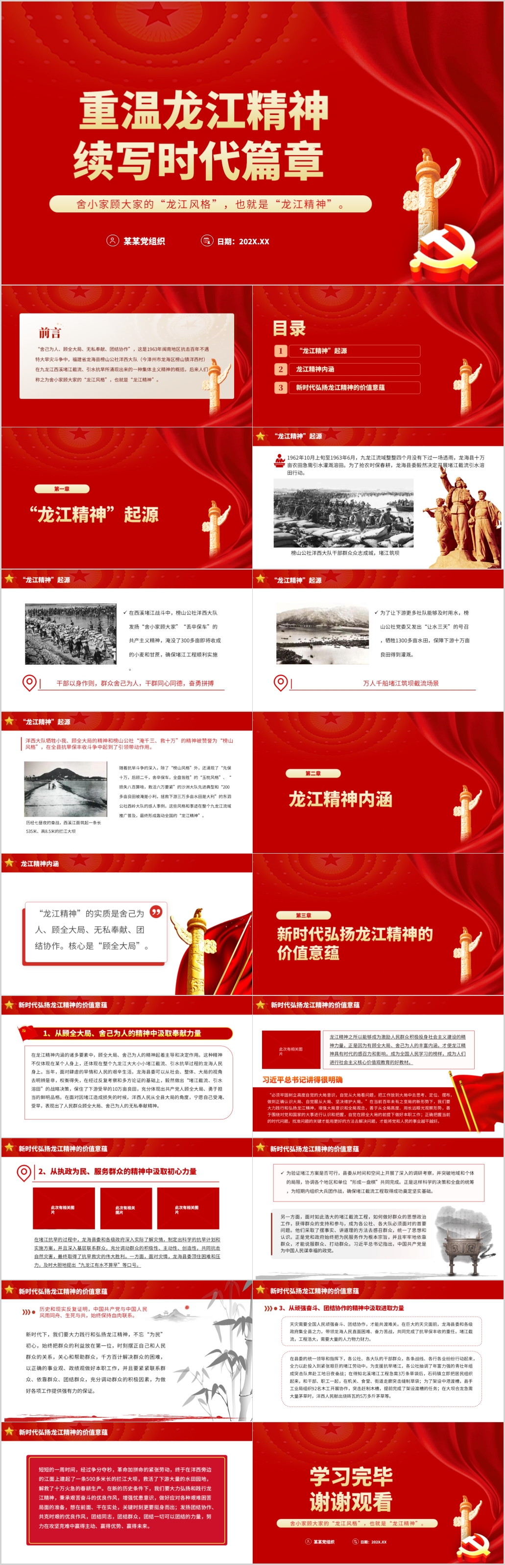 红色重温龙江精神续写时代篇章专题党课PPT模板(内含WORD演讲稿)