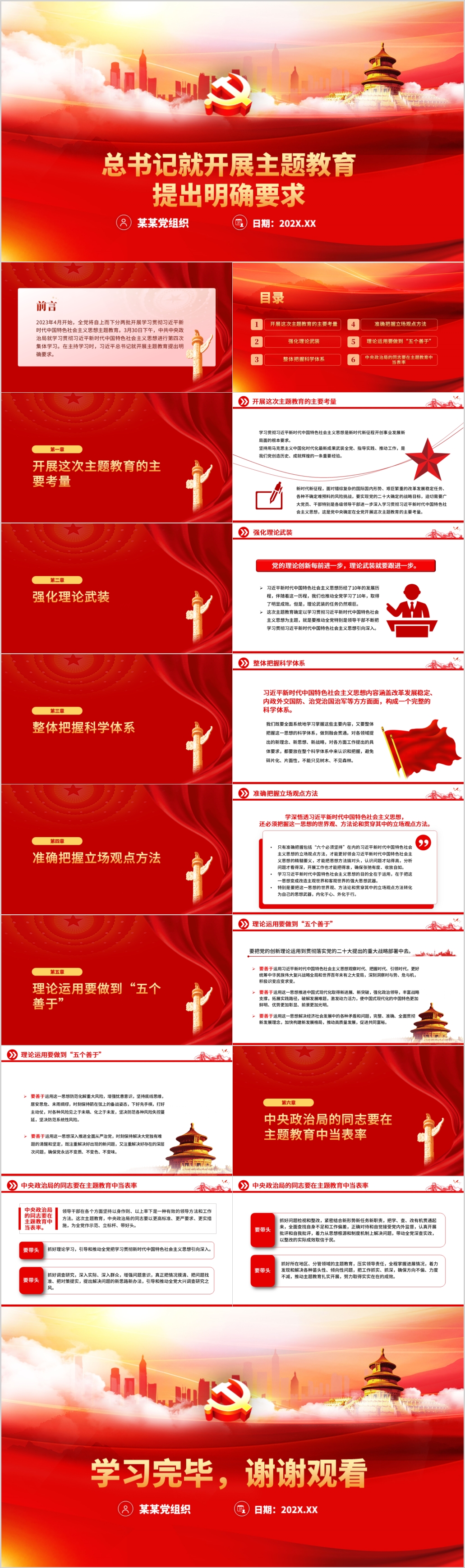 2023基层党组织党支部党内主题教育工作专题党课PPT模板(内含WORD演讲稿)