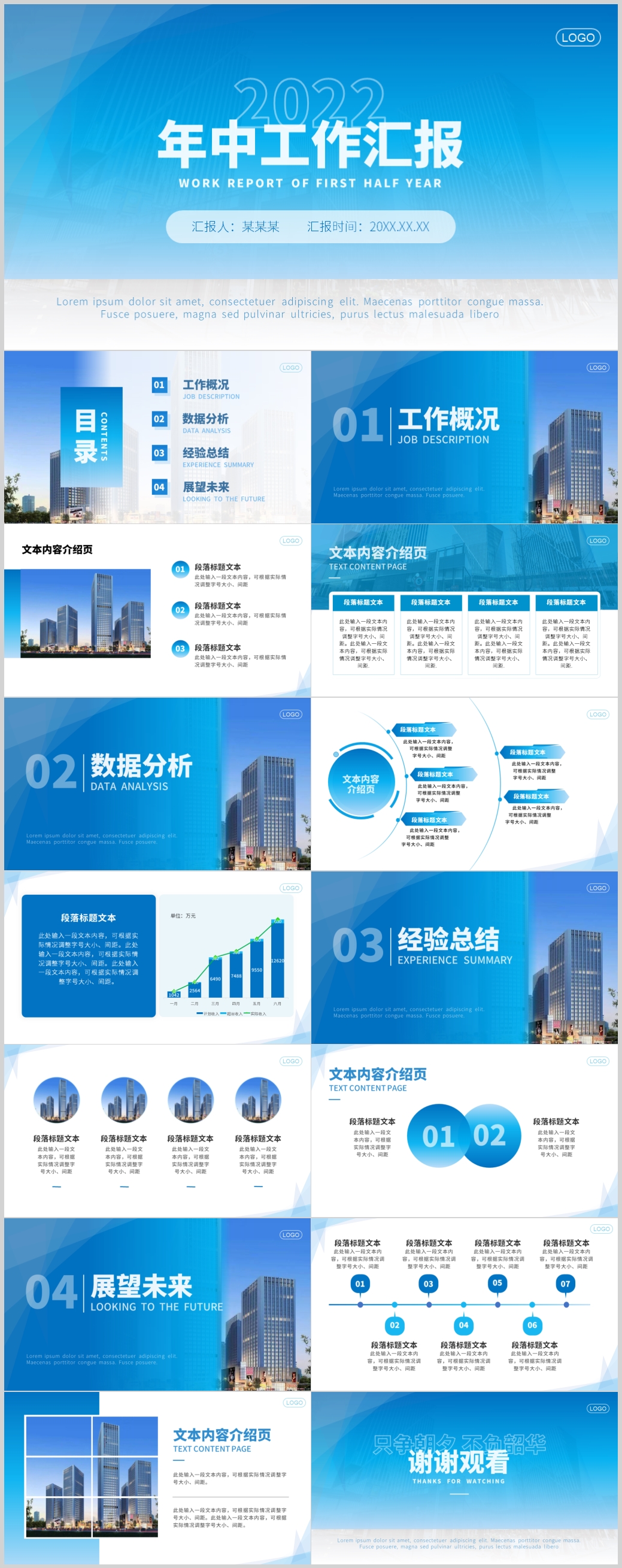 蓝色简约年中年终季度年终总结汇报PPT模板