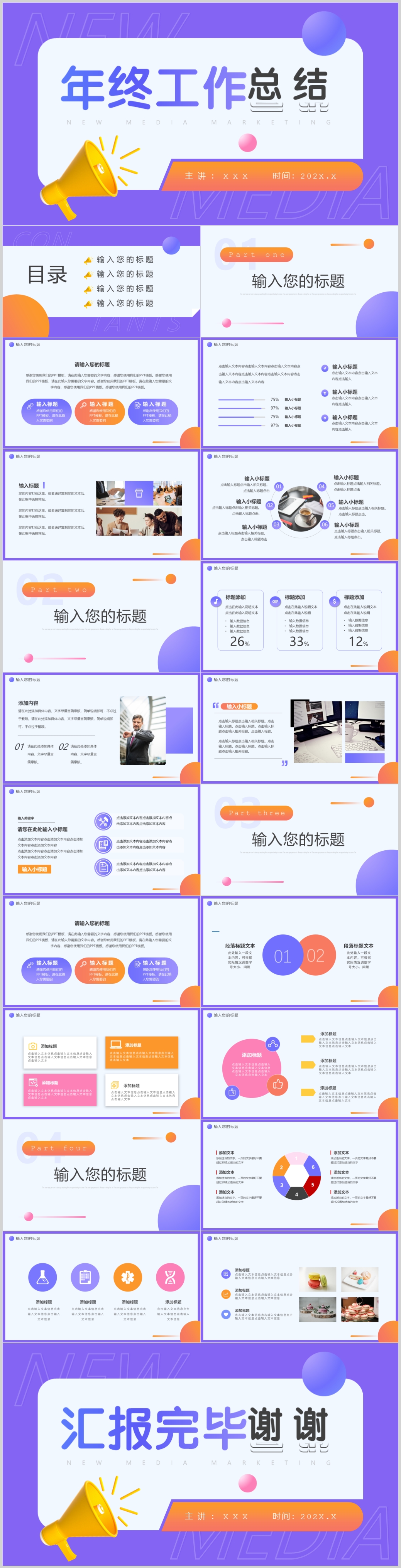 2023新风格年终工作总结暨新年工作计划ppt模板